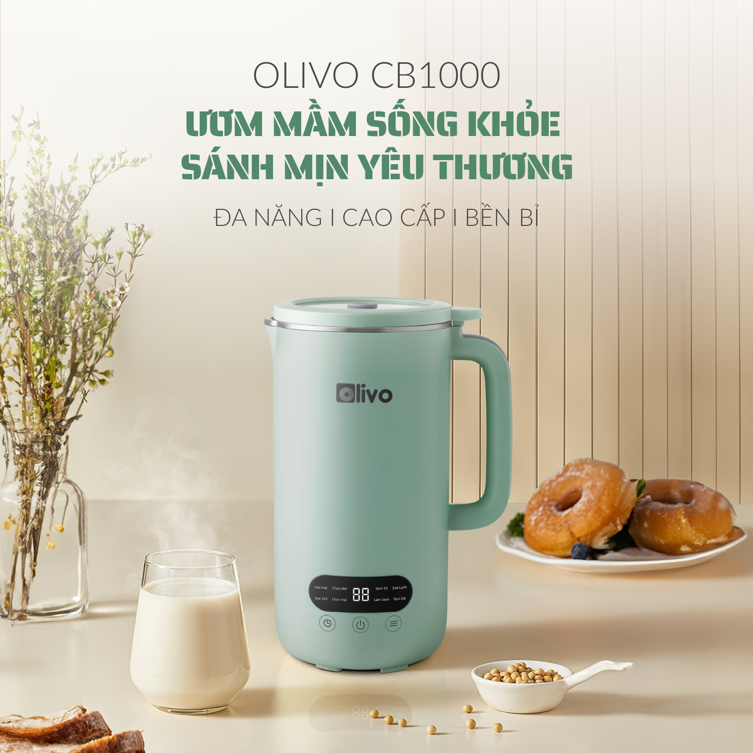 Trên thị trường Việt Nam, các dòng máy làm sữa hạt chia thành nhiều phân khúc, đặc biệt chú trọng vào thiết kế máy lớn 1,75L và kiểu máy mini 600ML. Riêng mức tầm trung chưa được nhiều thương hiệu khai thác. Nhận thấy nhu cầu sử dụng này, OLIVO đã cho ra mắt sản phẩm OLIVO CB1000 dung tích 1000ML.