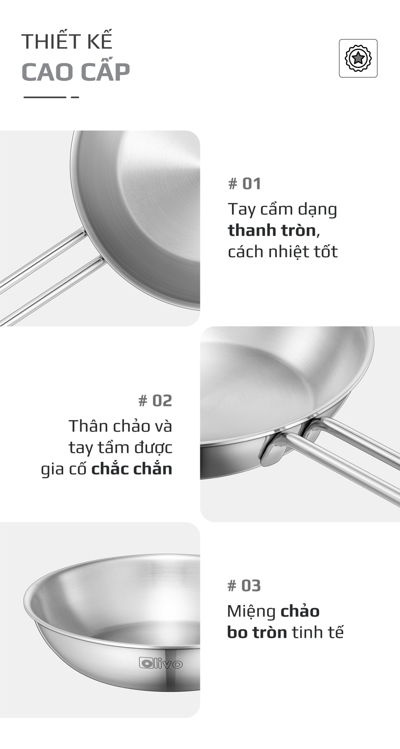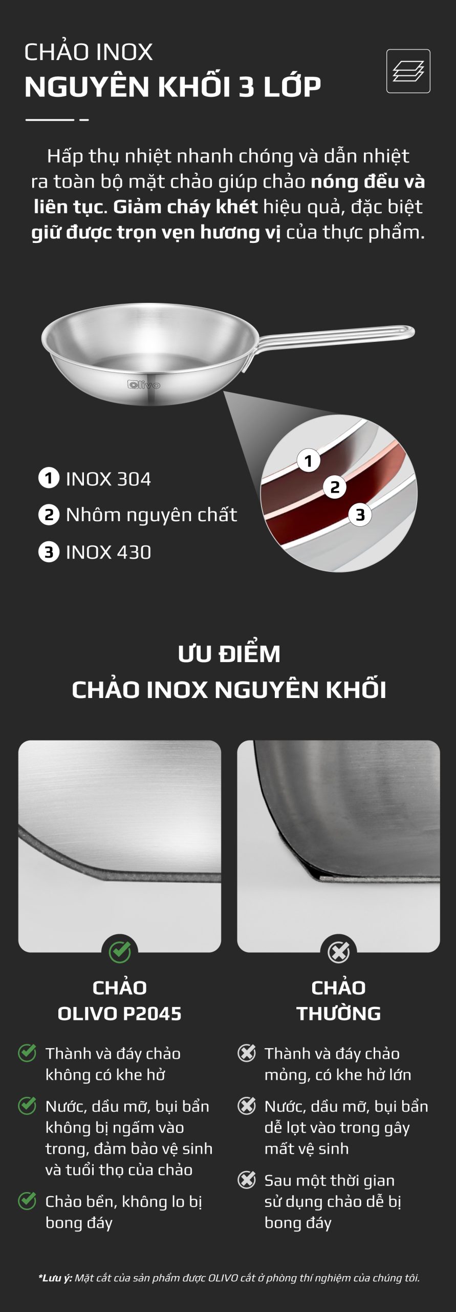 ƯU ĐIỂM VƯỢT TRỘI CỦA SẢN PHẨM CHẢO INOX OLIVO P2045