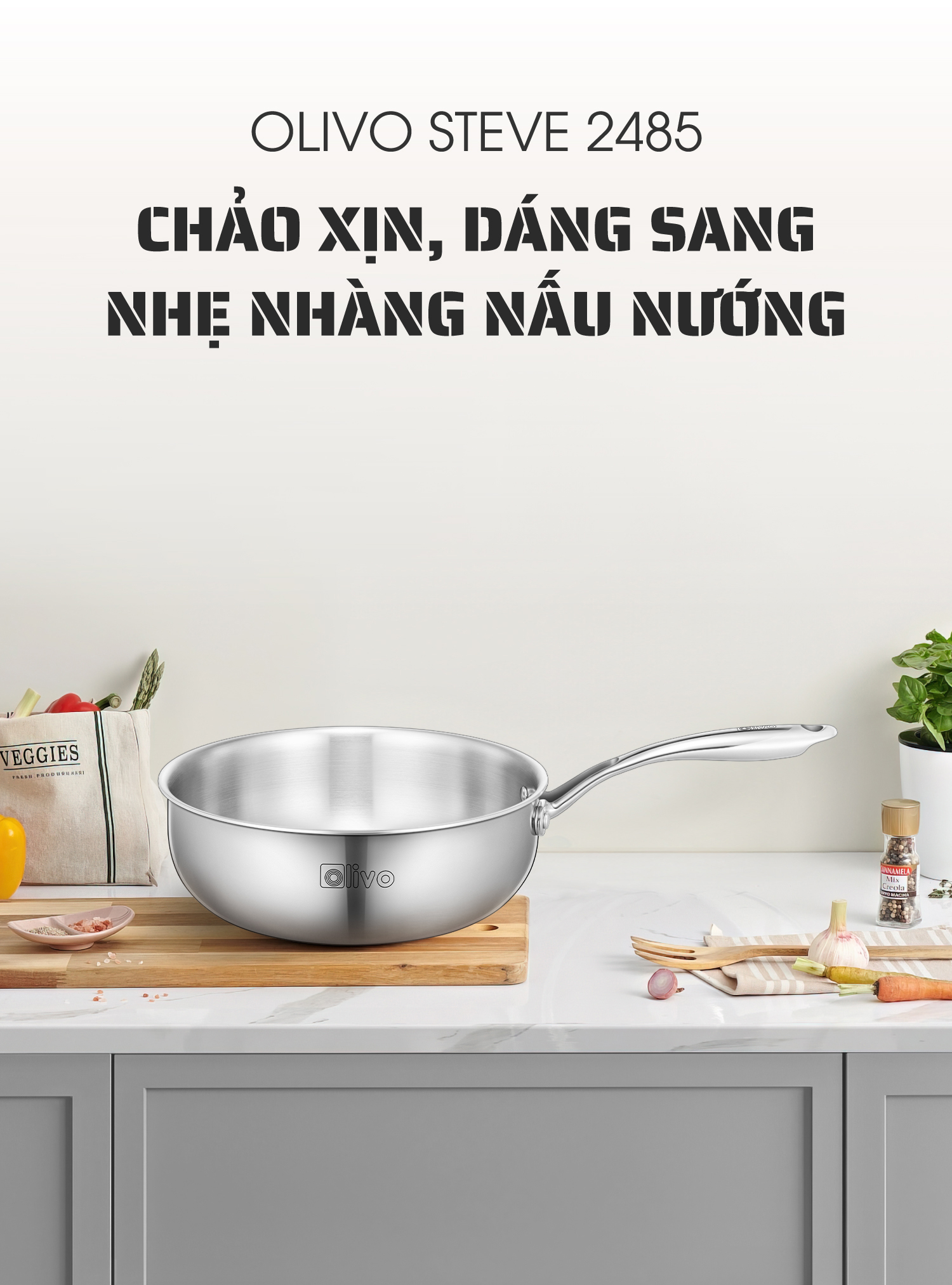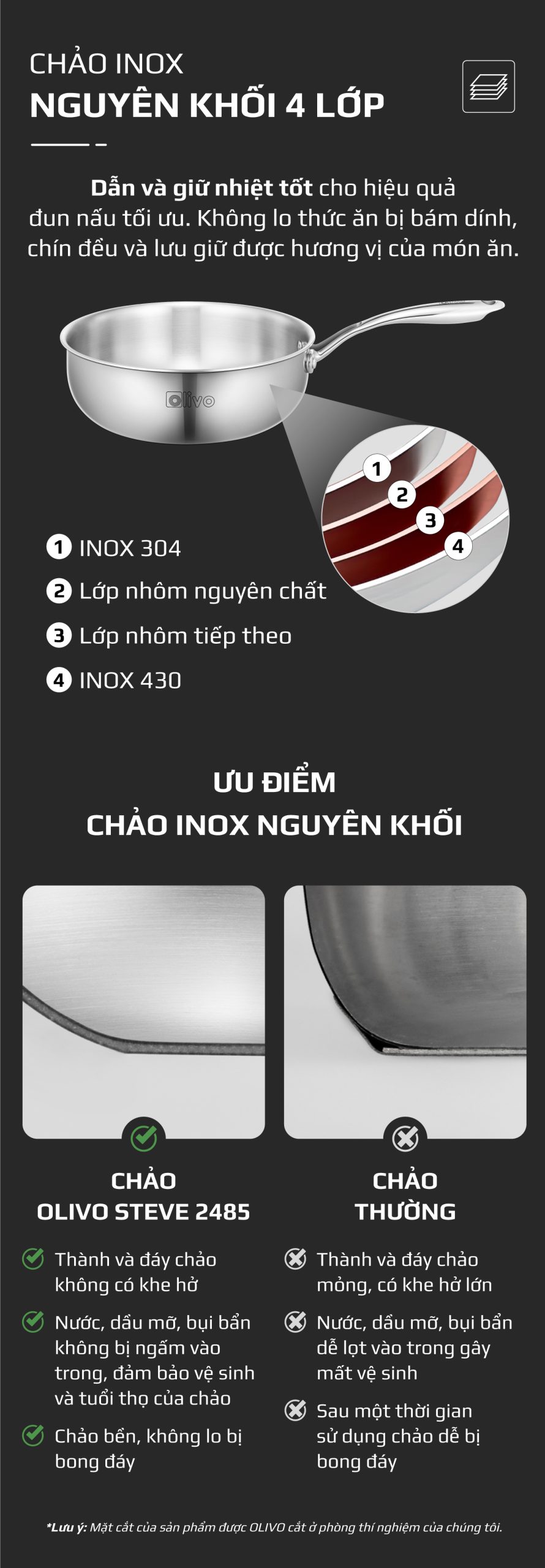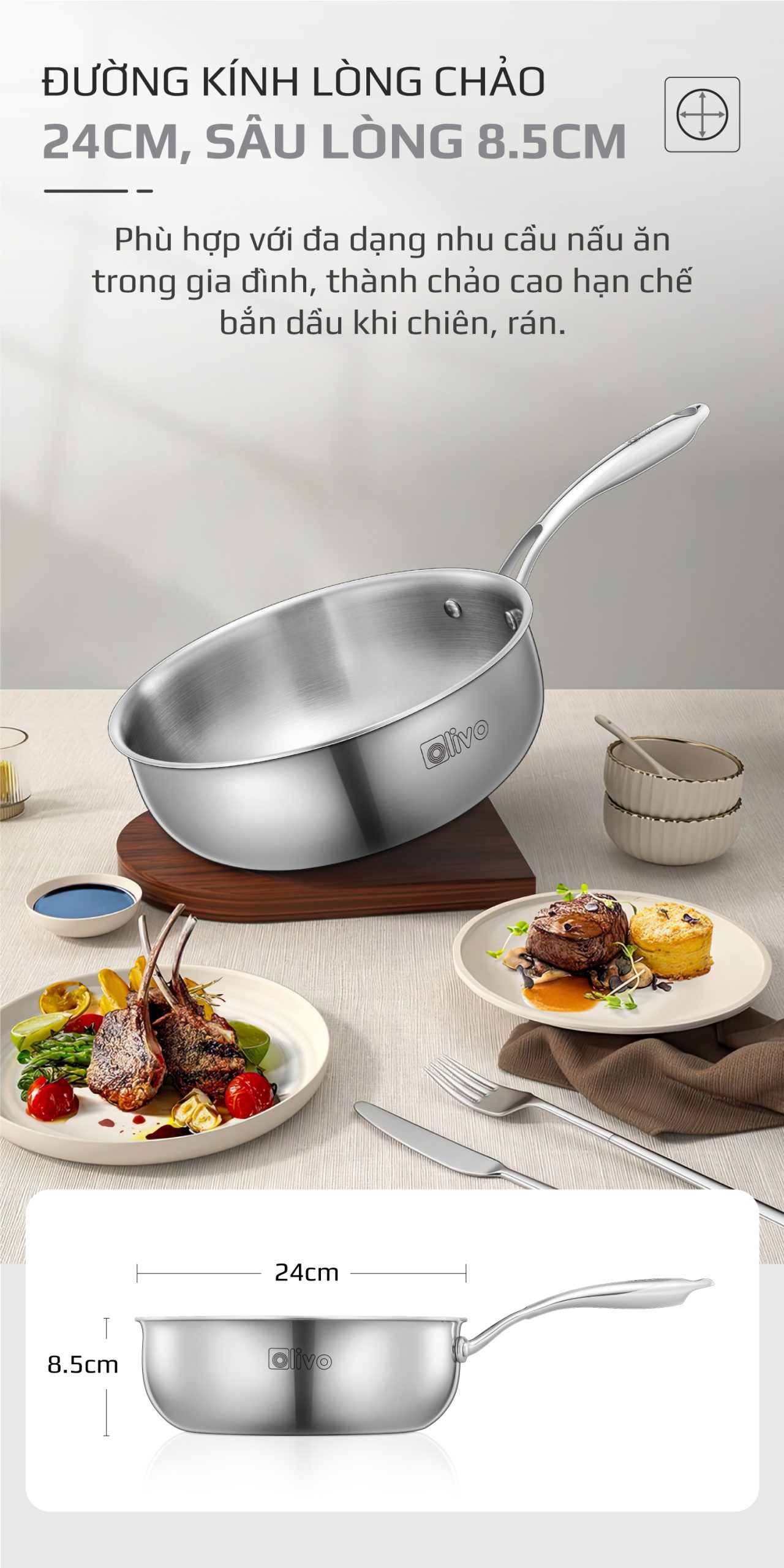 ƯU ĐIỂM VƯỢT TRỘI CỦA SẢN PHẨM CHẢO INOX OLIVO STEVE 2485