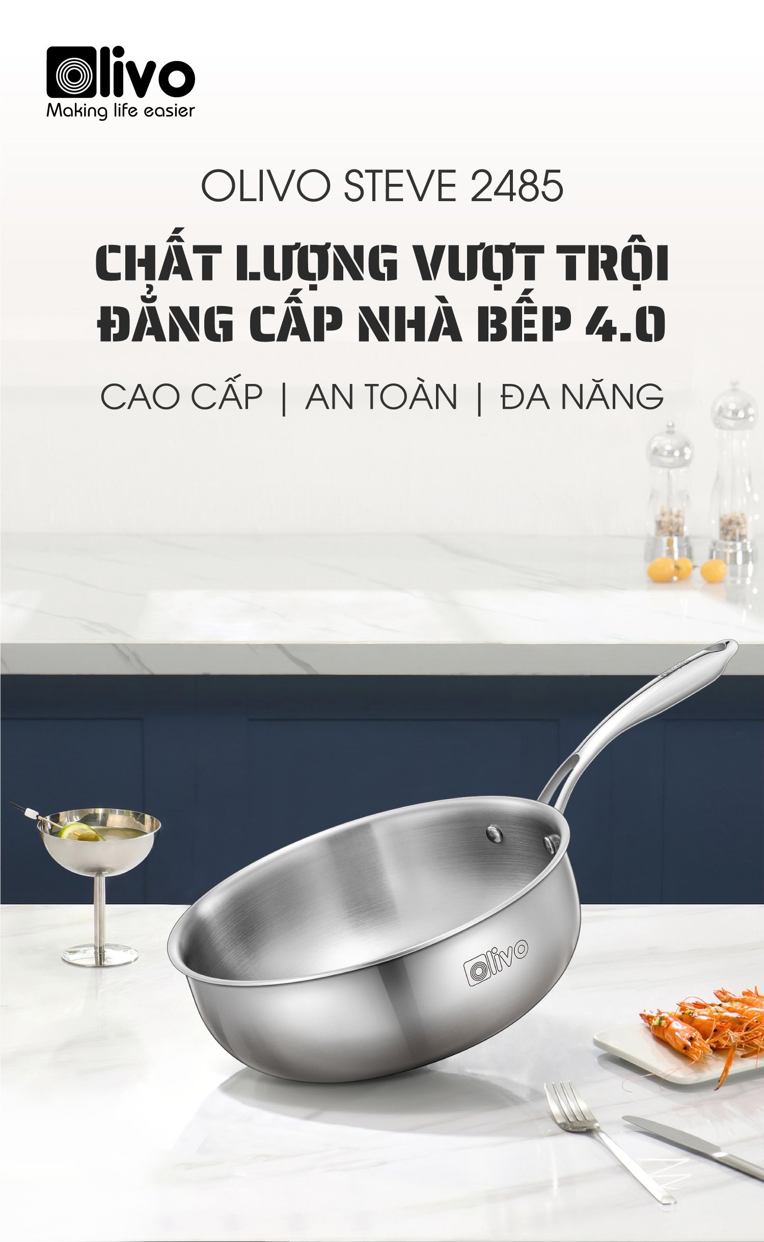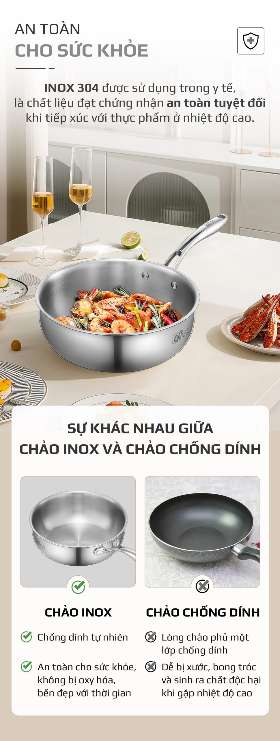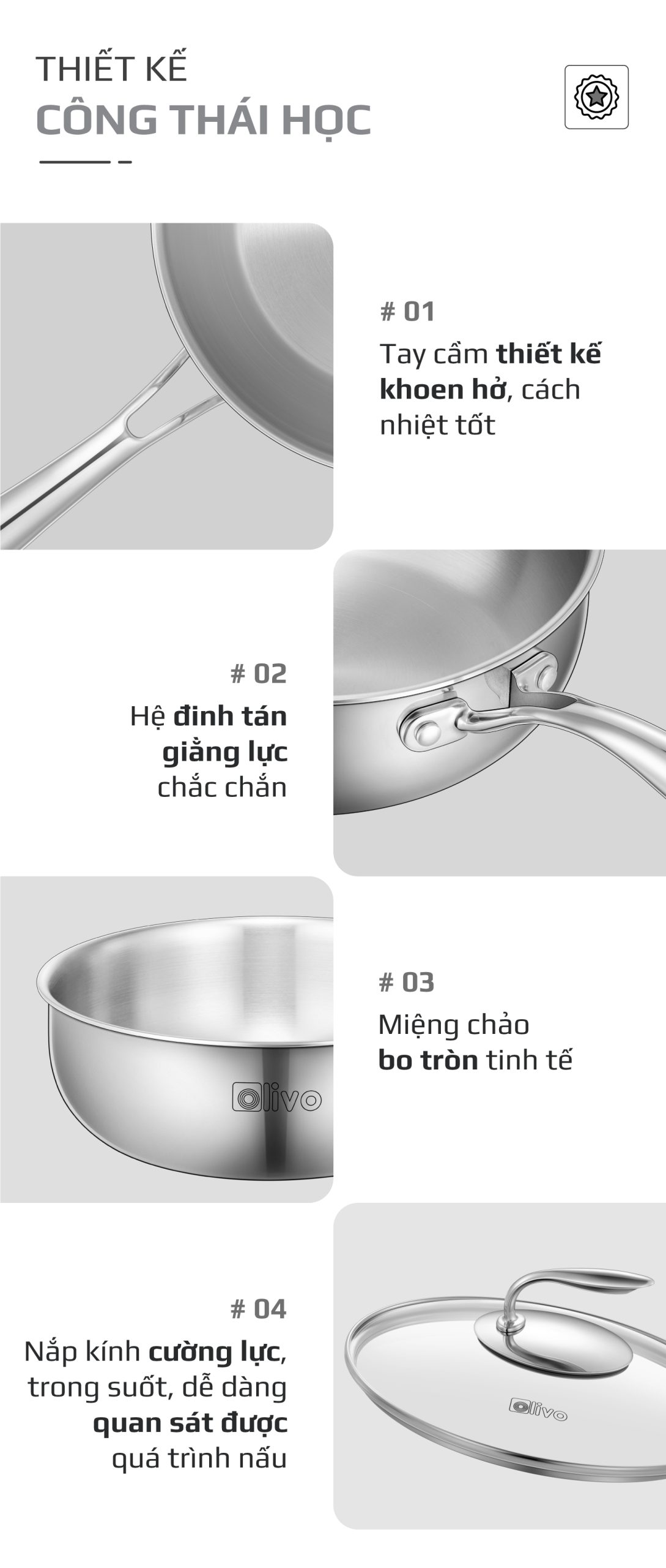 ƯU ĐIỂM VƯỢT TRỘI CỦA SẢN PHẨM CHẢO INOX OLIVO STEVE 2485