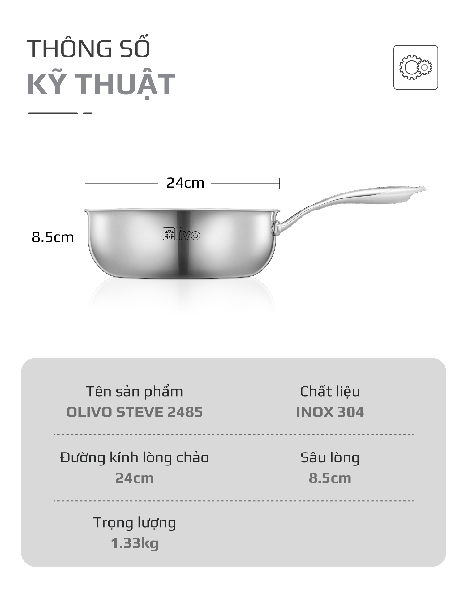 Hãy chọn ngay Chảo INOX OLIVO STEVE 2485 để nâng cao chất lượng bữa ăn của bạn và trải nghiệm sự tiện lợi trong việc nấu nướng hàng ngày!
