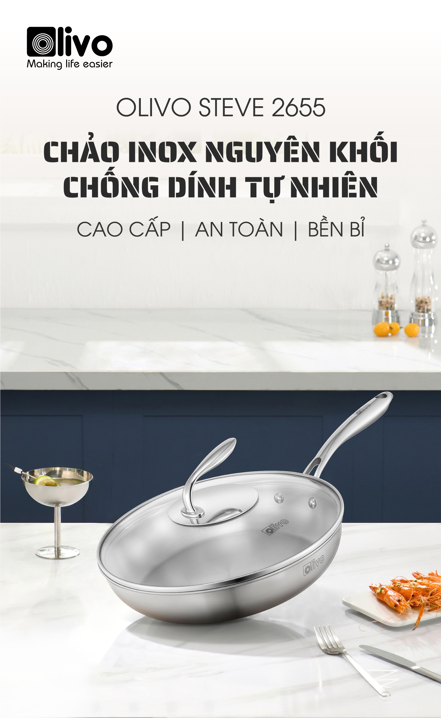 • Bài viết dưới đây xin giới thiệu tới quý khách hàng sản phẩm CHẢO INOX OLIVO STEVE 2655 nguyên khối, chống dính tự nhiên, an toàn cho sức khỏe.