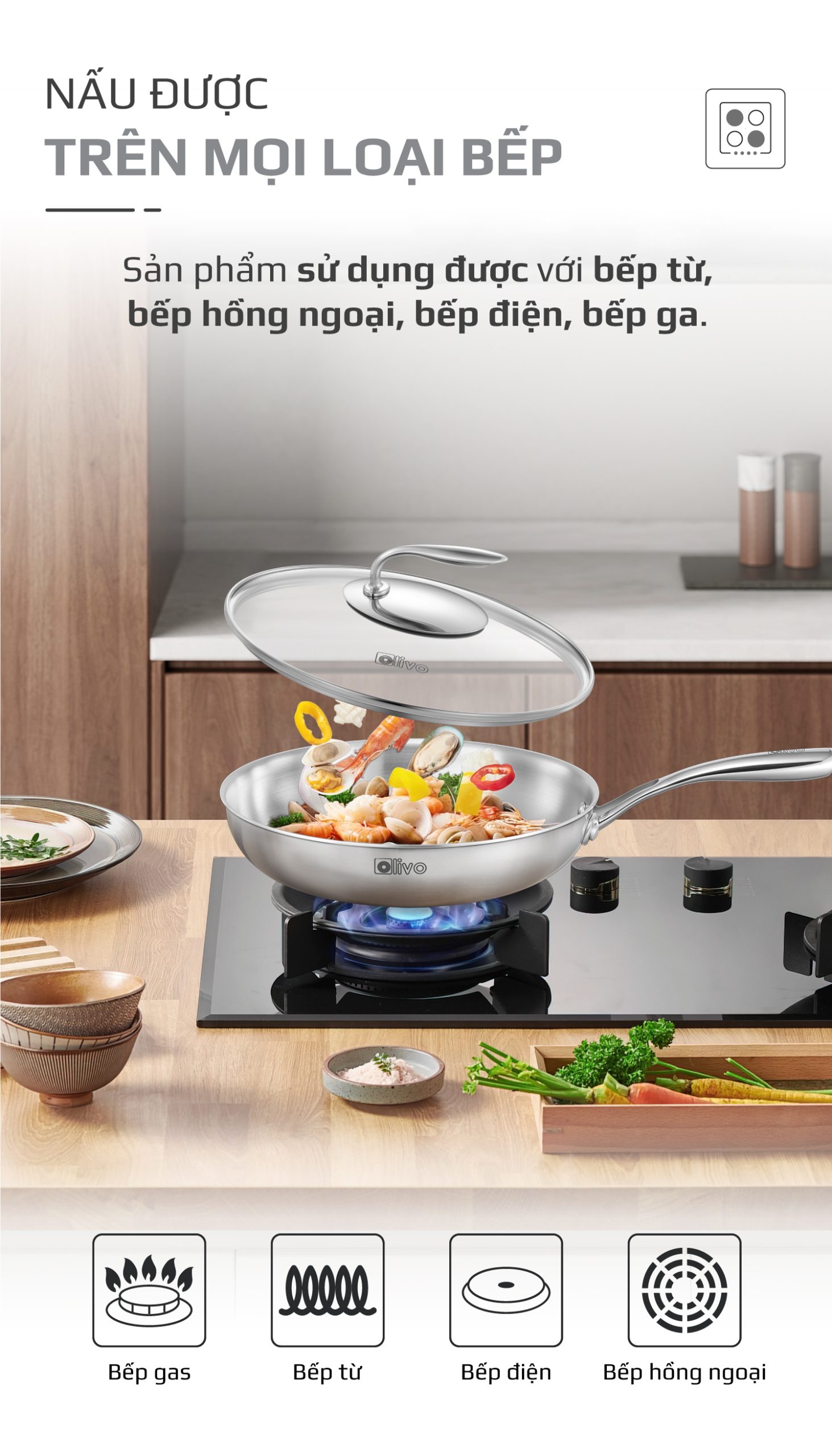 • Điểm quan trọng nữa của một chiếc chảo đa năng đó là khả năng sử dụng linh hoạt với nhiều thiết bị nhà bếp. OLIVO STEVE 2655 sử dụng được với tất cả các loại bếp phổ biến như bếp từ, bếp hồng ngoại, bếp điện, bếp ga.