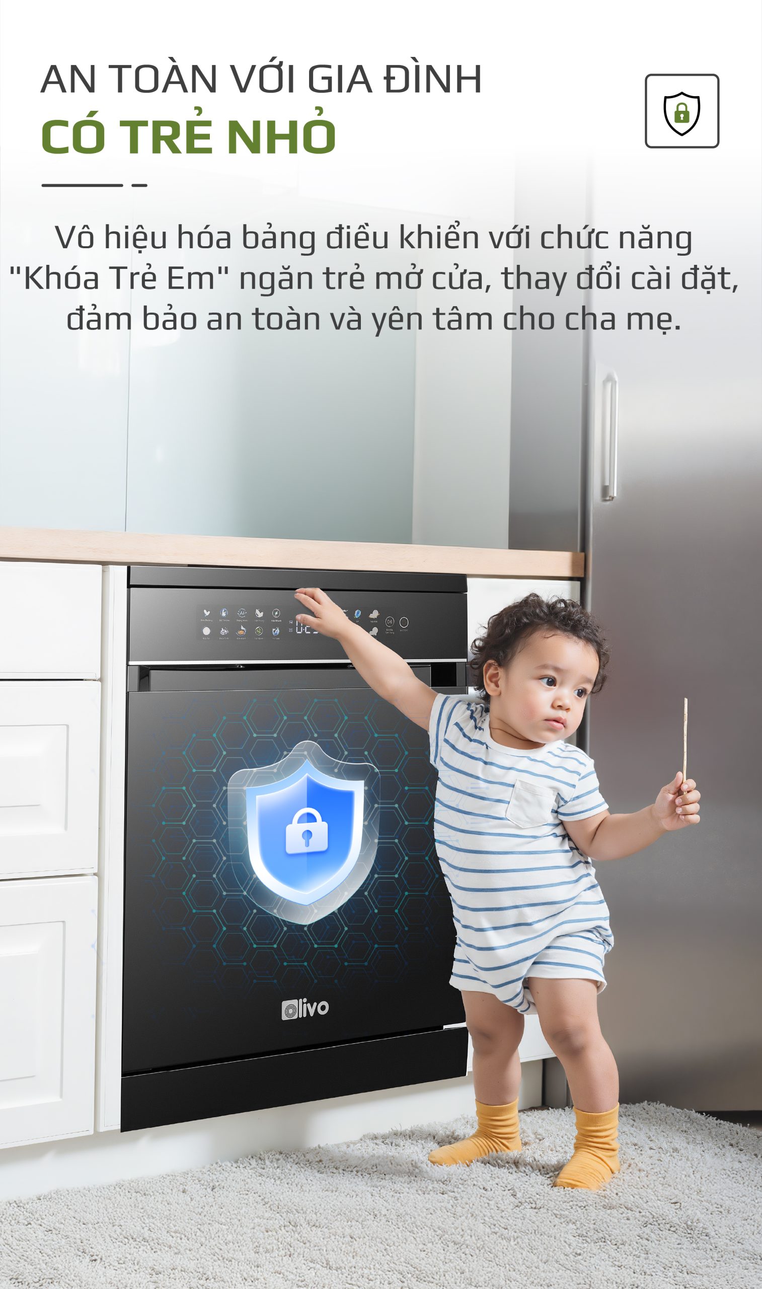 - Khóa Trẻ Em: Vô hiệu hóa các chức năng ngăn trẻ nhỏ bấm nhầm gây nguy hiểm