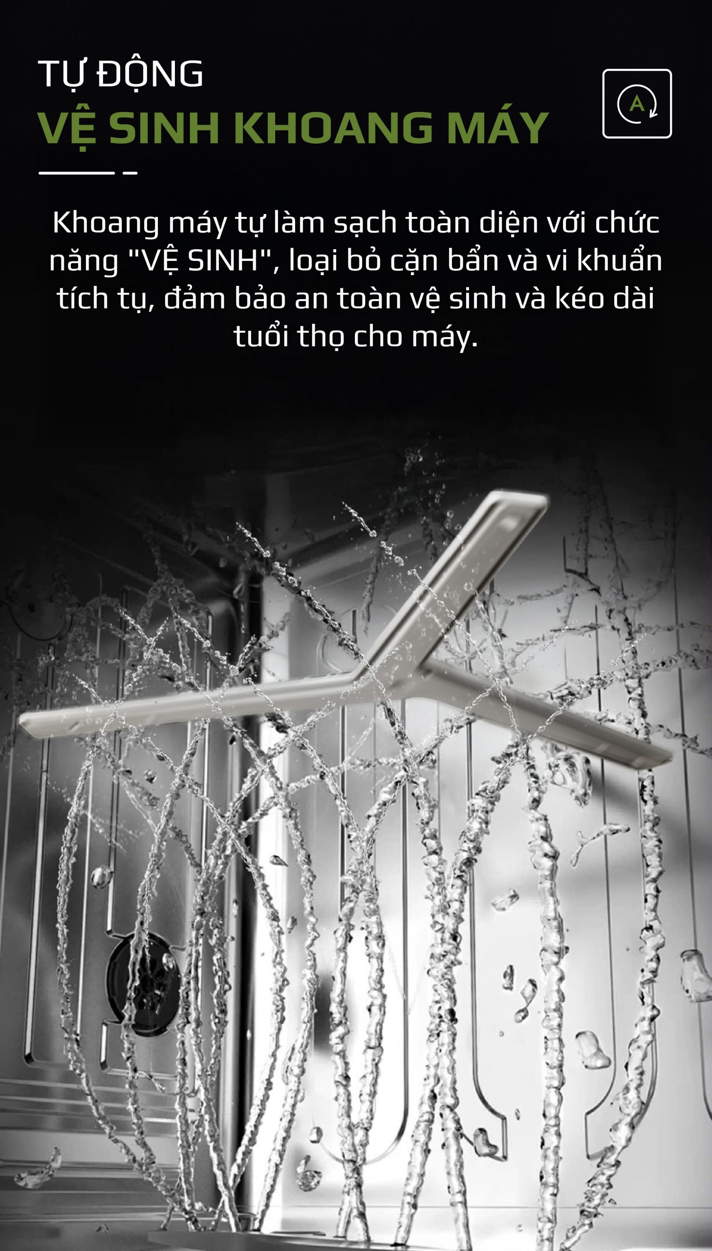 - Vệ Sinh: Máy tự động vệ sinh khoang máy, giúp duy trì độ sạch và tuổi thọ thiết bị.