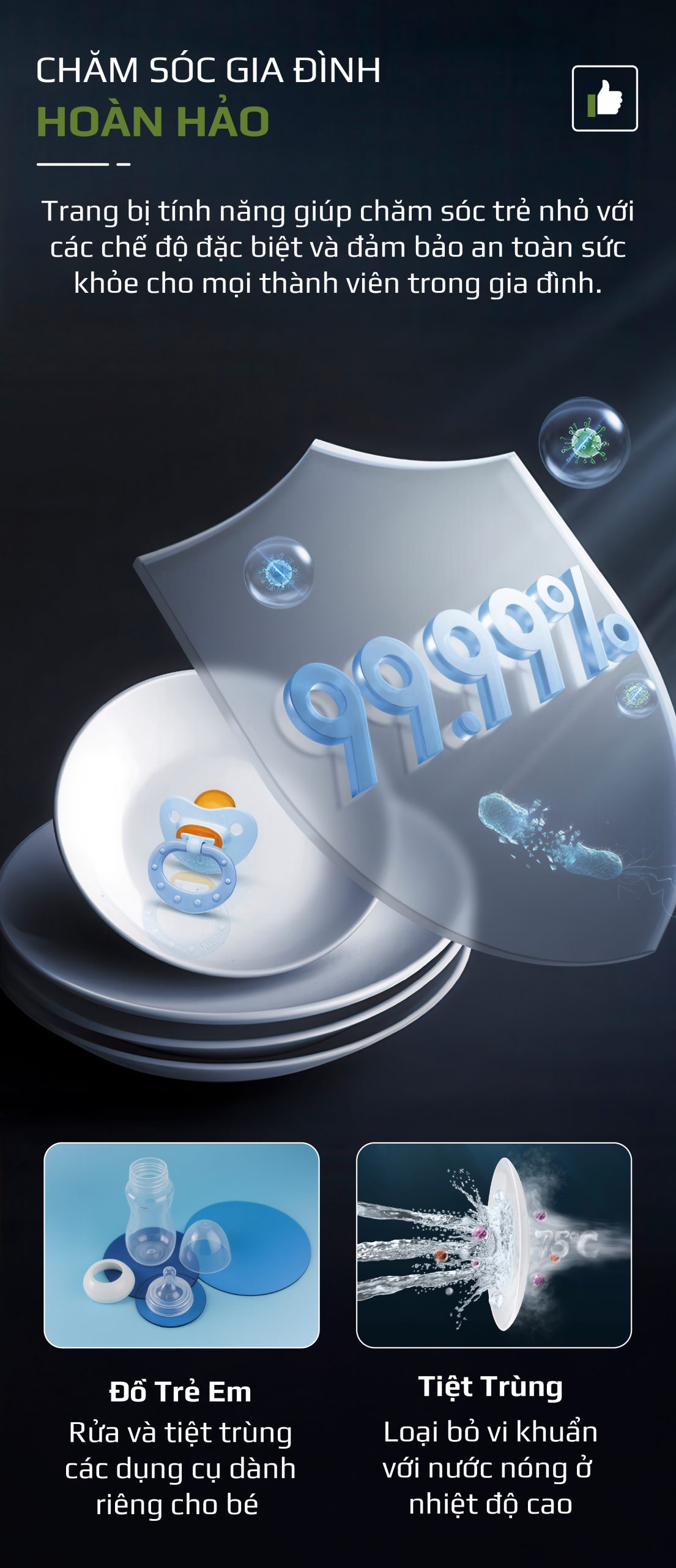 - Đồ Trẻ Em: Rửa và tiệt trùng đồ dùng dành cho em bé.
