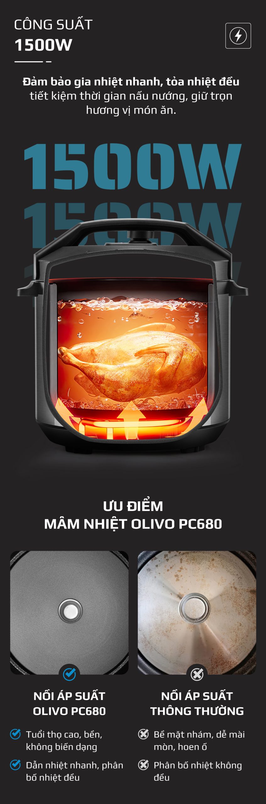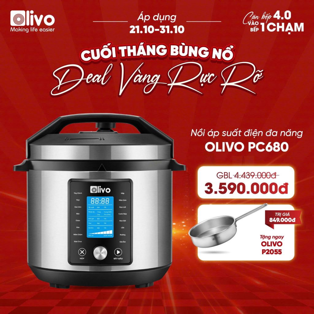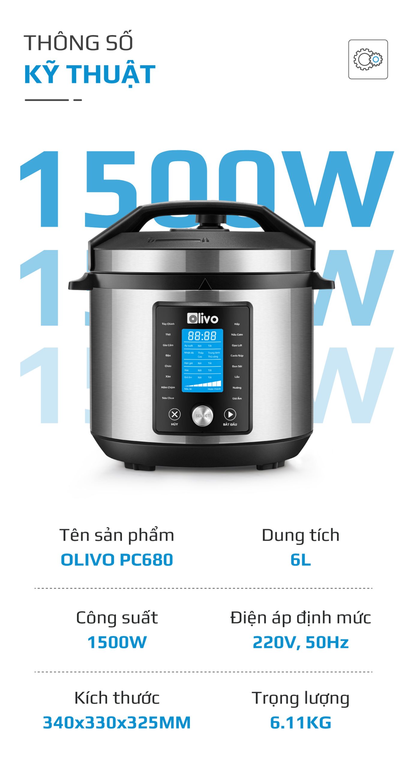OLIVO trân trọng giới thiệu đến quý khách hàng sản phẩm mới – Nồi áp suất điện OLIVO PC680. Với thiết kế hiện đại, tính năng đa dạng và chất lượng vượt trội, PC680 hứa hẹn sẽ trở thành người bạn đồng hành không thể thiếu trong căn bếp của mỗi gia đình.