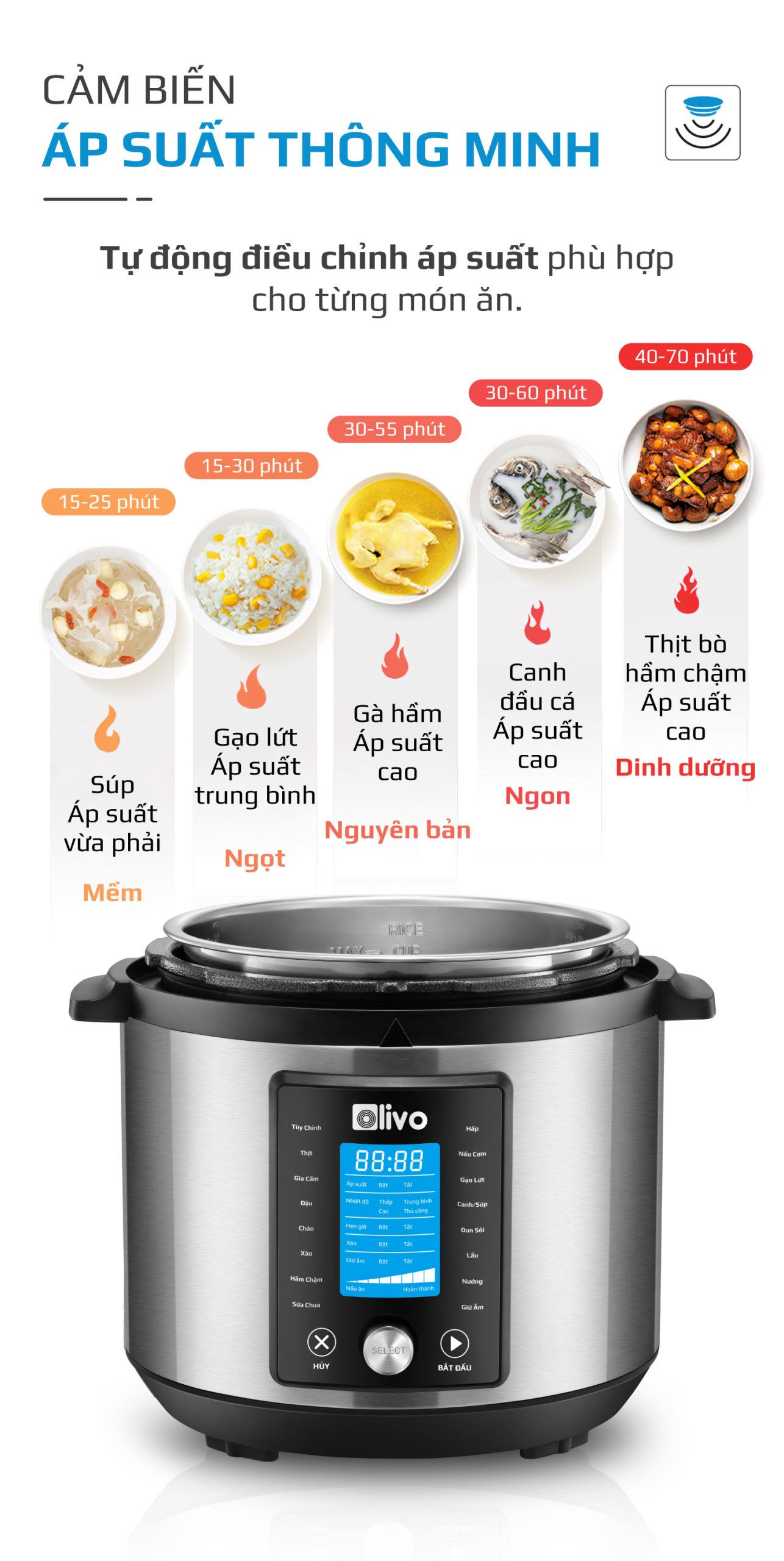 Đảm bảo chất lượng món ăn: Nhờ việc kiểm soát áp suất chính xác, cảm biến giúp thức ăn được nấu chín nhanh chóng, giữ nguyên được chất dinh dưỡng và màu sắc tự nhiên.
