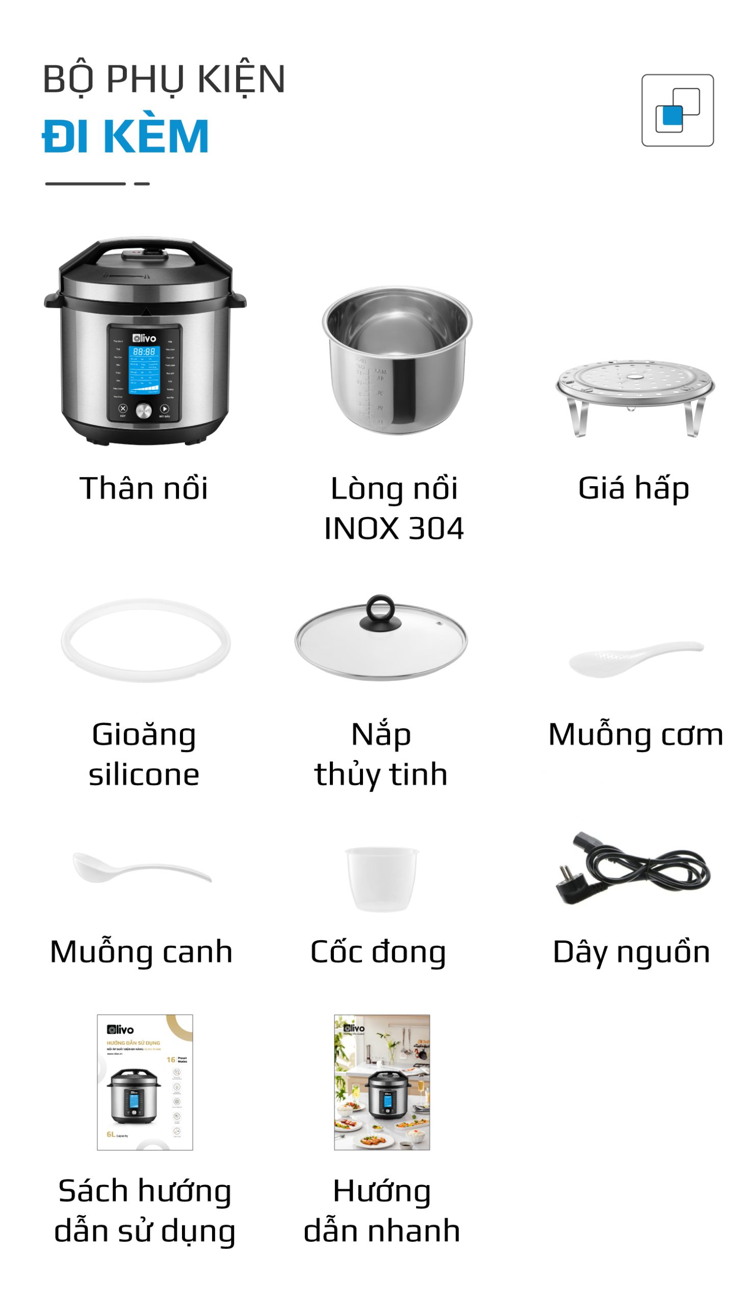 Bộ phụ kiện đi kèm nồi áp suất OLIVO PC680 bao gồm: