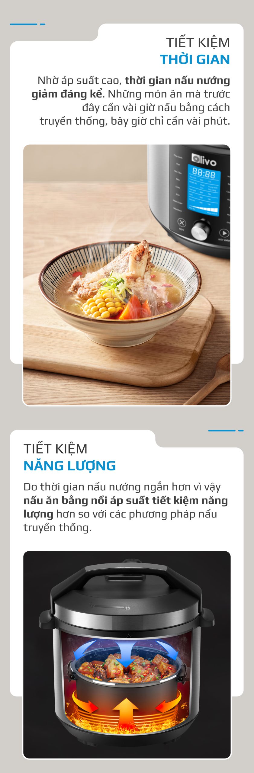 Tiết kiệm thời gian: Nhờ áp suất cao, thời gian nấu nướng giảm đáng kể. Những món ăn mà trước đây cần vài giờ nấu bằng cách truyền thống, bây giờ chỉ cần vài phút.