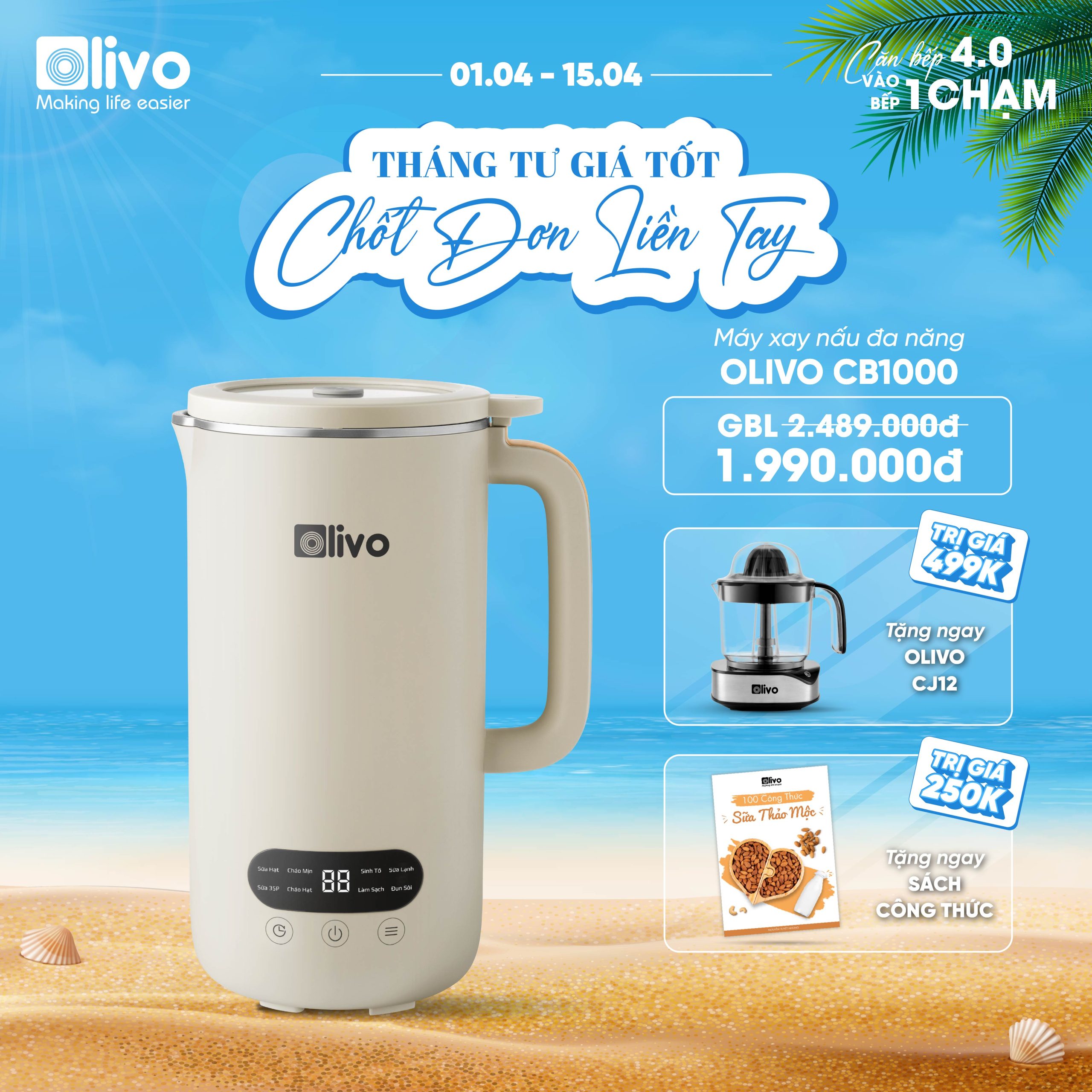 Máy Làm Sữa Hạt OLIVO CB1000 – Dung Tích 1L, Nắp INOX Kết Hợp Kính Cường Lực Duy Nhất Trên Thị Trường, Công Suất 880W, 9 Chế Độ, Chống Trào Tuyệt Đối
