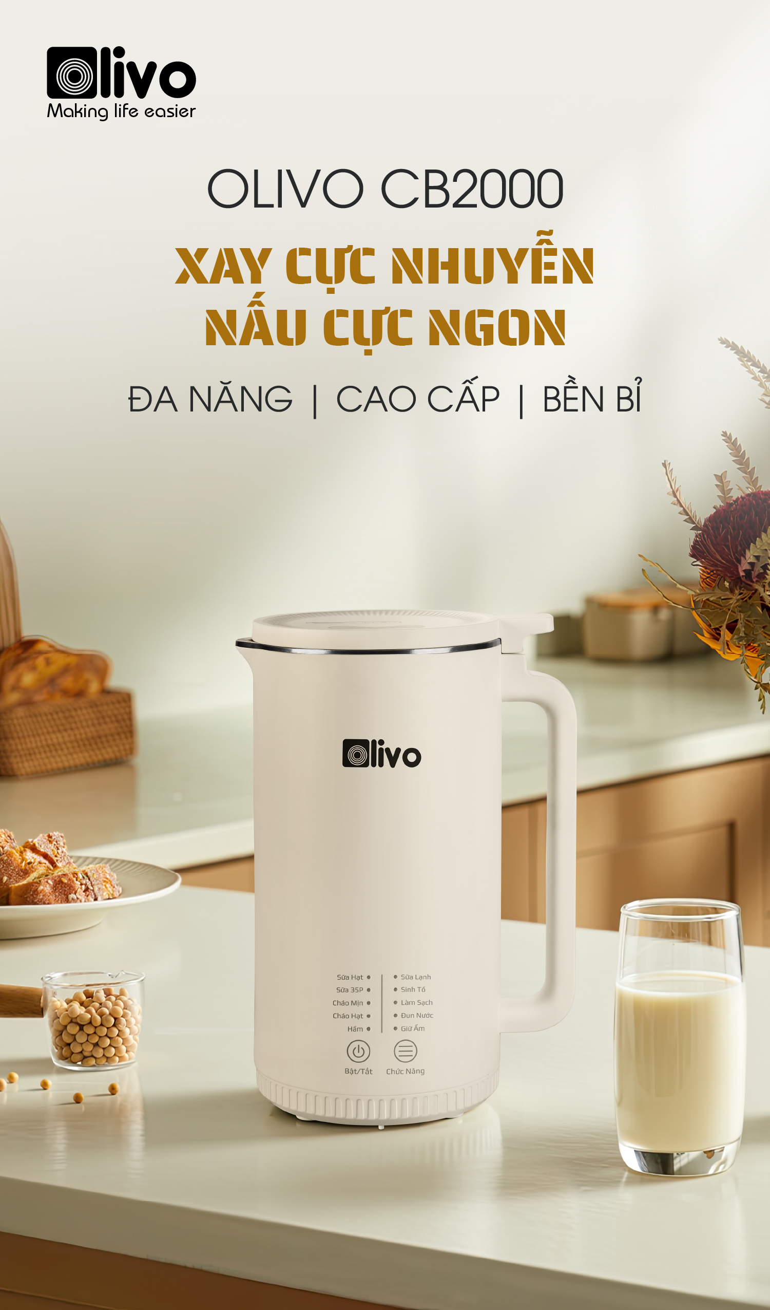 ƯU ĐIỂM VƯỢT TRỘI CỦA MÁY XAY NẤU ĐA NĂNG OLIVO CB2000