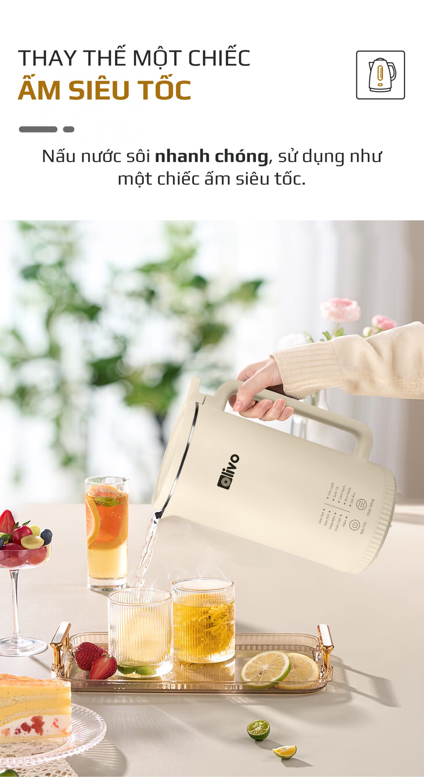 - Đun Nước: Bạn có thể sử dụng OLIVO CB2000 như một chiếc ấm siêu tốc để đun sôi nước nhanh chóng.
