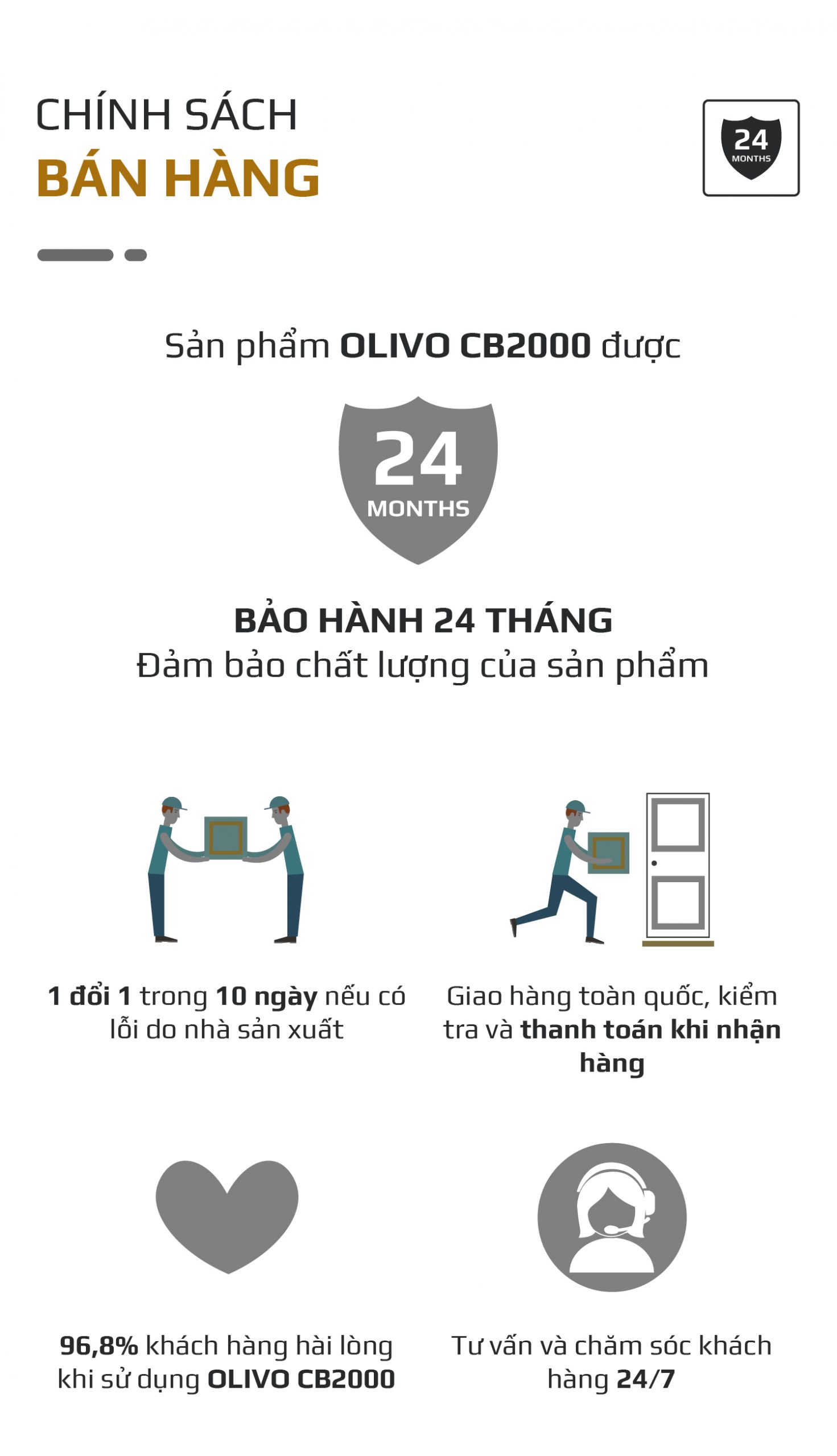 - Các sản phẩm của OLIVO được hoàn thiện tỉ mỉ trong từng chi tiết, từ thiết kế đến chất liệu, đảm bảo mang đến cho khách hàng những sản phẩm tốt nhất.