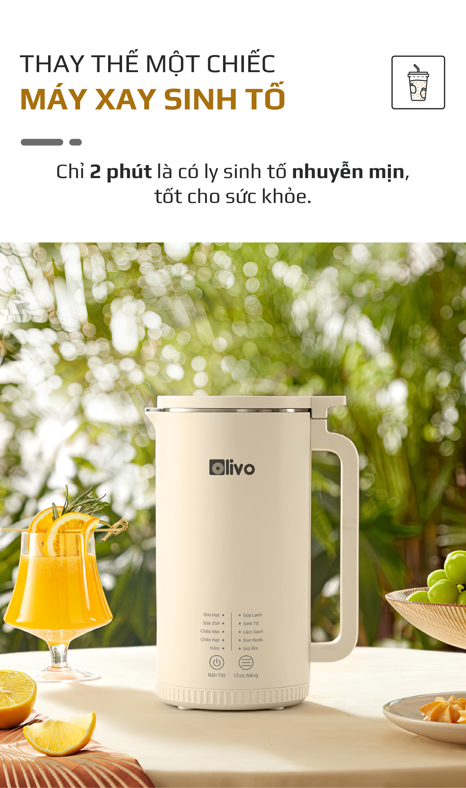 - Sinh Tố: Ngoài việc nấu cháo, nấu sữa hạt OLIVO CB2000 có thể được sử dụng như một chiếc máy xay để xay sinh tố, làm smoothie… rất tiện lợi.
