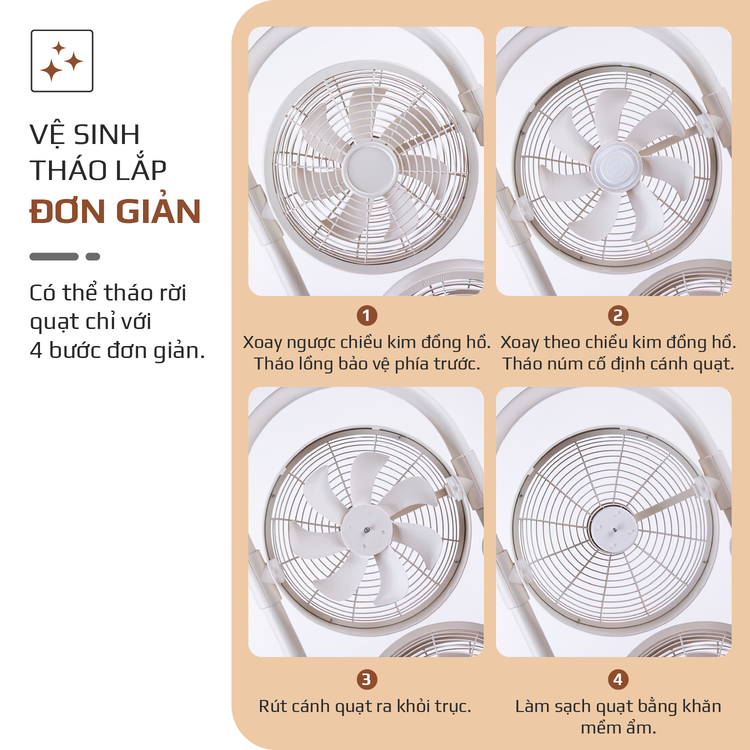 - Bộ 03 lồng quạt nhưng tháo lắp thì vô cùng đơn giản, các khớp nối thông minh, tinh tế liên kết chặt chẽ nhưng cũng dễ dàng tháo rời. Giúp việc vệ sinh quạt dễ dàng hơn.