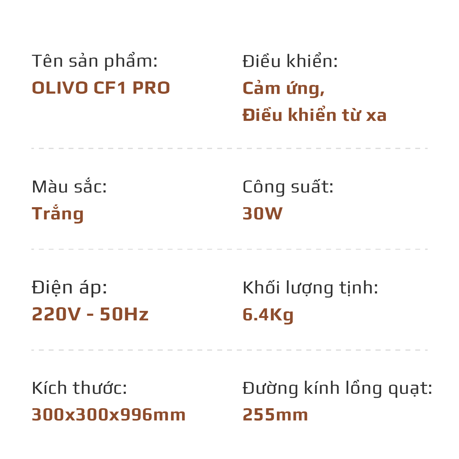 - Độ ồn của động cơ khi quạt hoạt động là một điểm phiền phức rất khó chịu cho người dùng. Nỗi băn khoăn quạt công suất lớn thì tiếng ồn lớn, quạt công suất nhỏ thì không đủ làm mát. Vậy thì, bạn có thể hoàn toàn yên tâm với OLIVO CF1 PRO bộ 3 lồng quạt hoạt động mạnh mẽ nhưng lại vô cùng êm ái cho bạn không gian nghỉ ngơi yên tĩnh và hoàn hảo nhất.