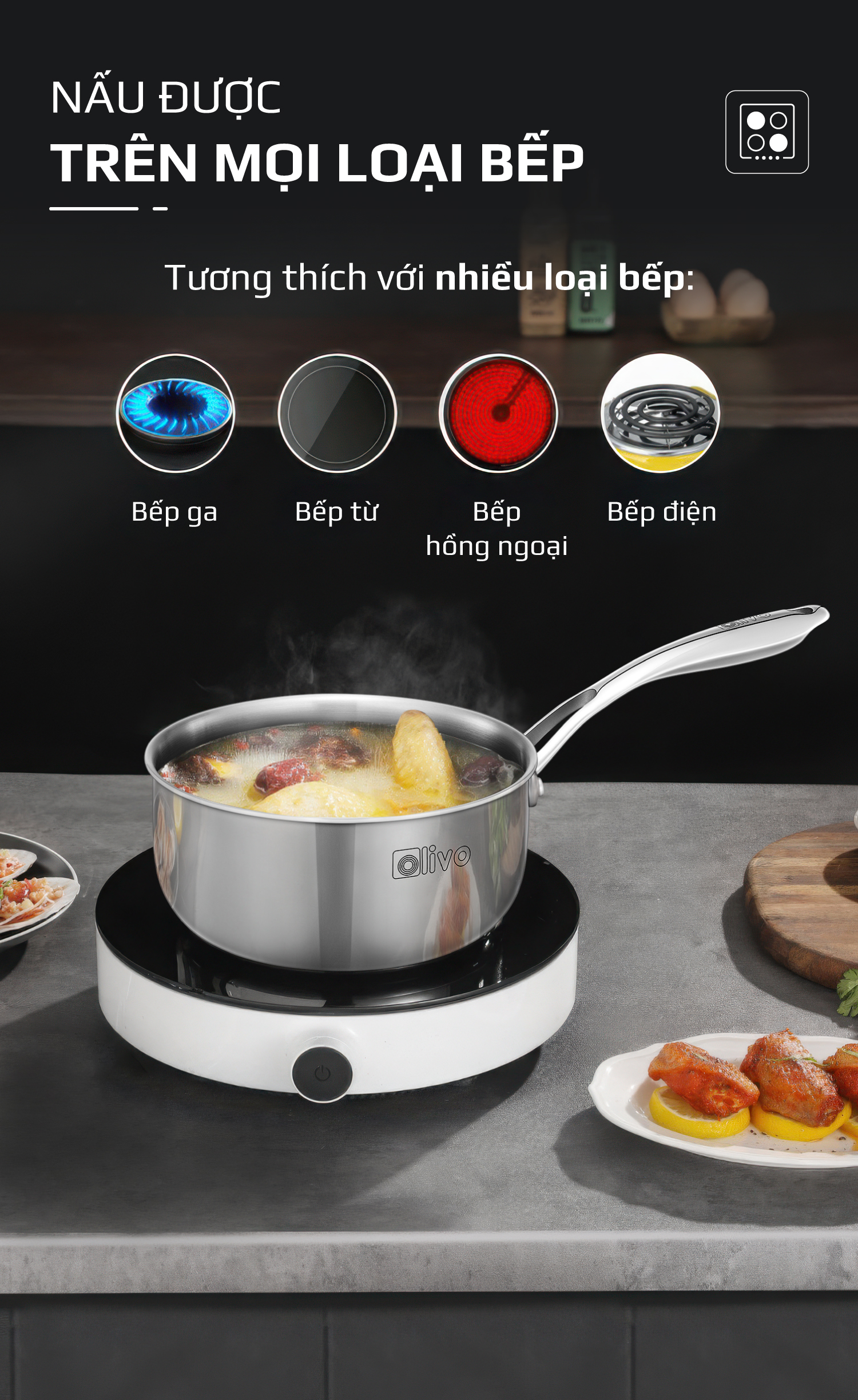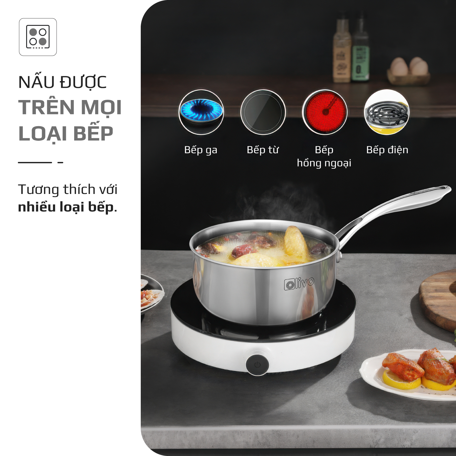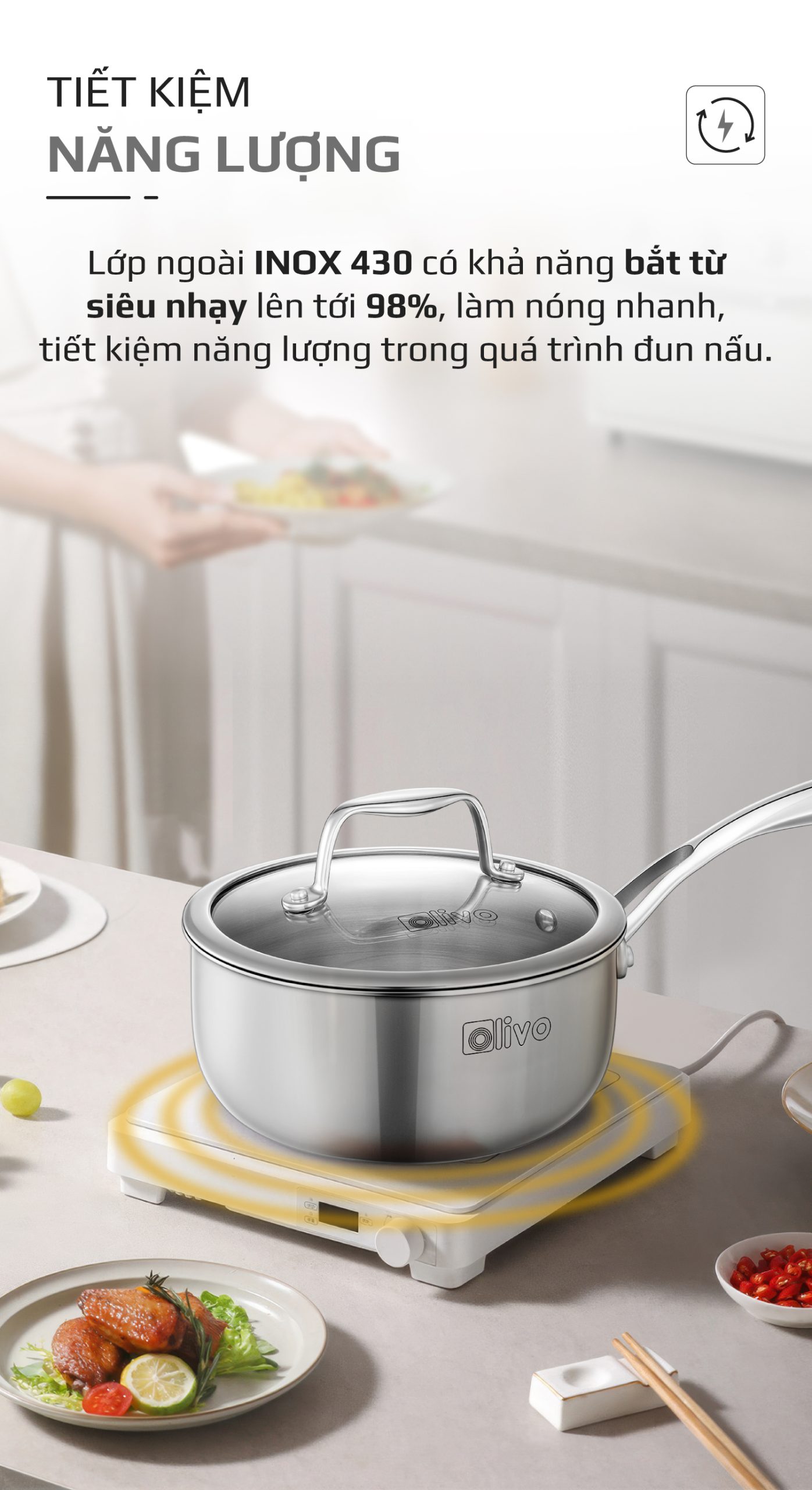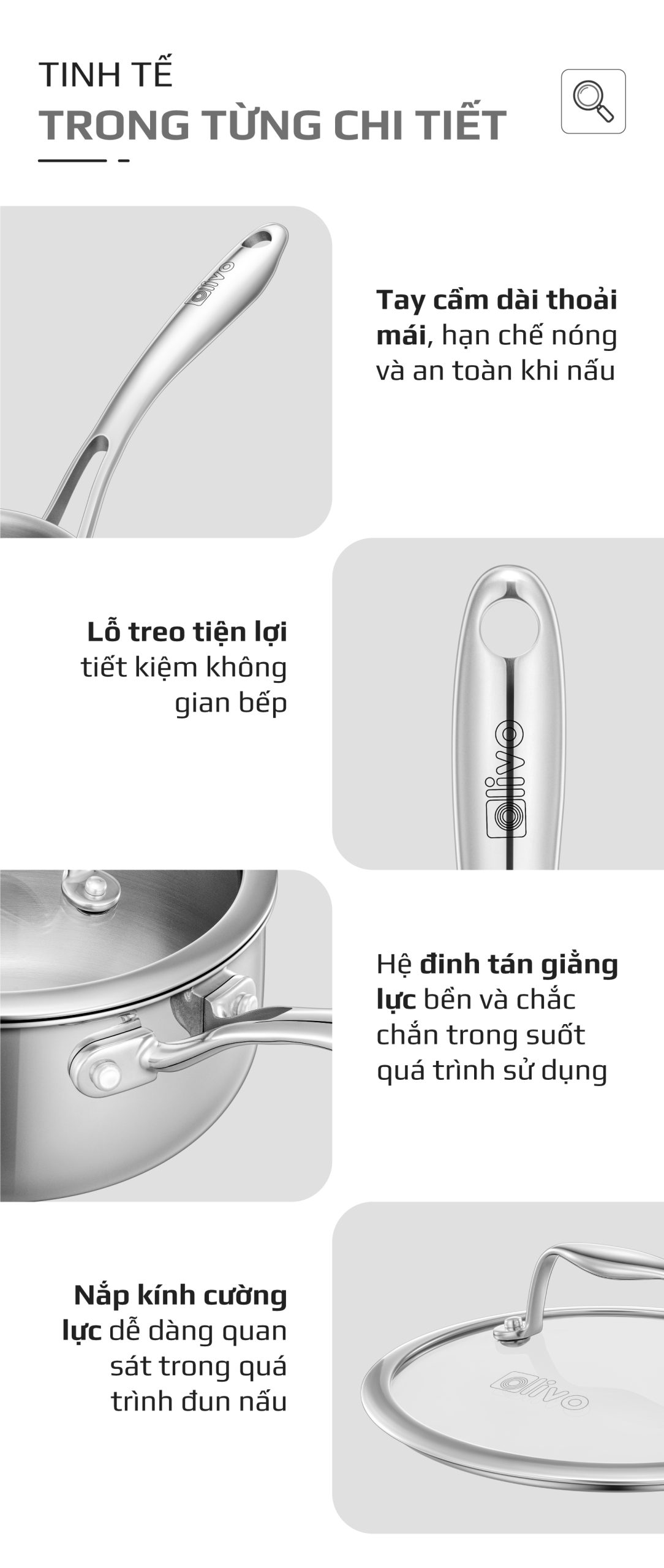 - Nhỏ gọn nhưng “đa năng”, quánh inox OLIVO Davinci SD1885 là lựa chọn hoàn hảo cho các gia đình có trẻ nhỏ và ít người. Trợ thủ thông minh, đồng hành cùng bạn trong từng bữa ăn gia đình.