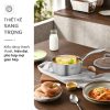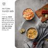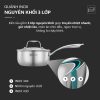 - Lớp giữa: Nhôm nguyên chất giúp truyền nhiệt nhanh, tỏa đều khắp đáy quánh, hạn chế cháy khét và giúp món ăn chín đều, giữ trọn hương vị tự nhiên.