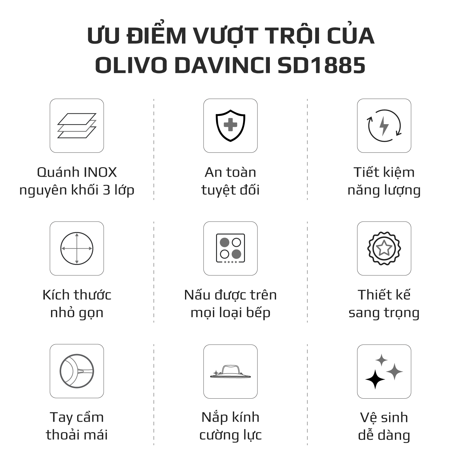 ƯU ĐIỂM VƯỢT TRỘI CỦA QUÁNH INOX OLIVO DAVINCI SD1885