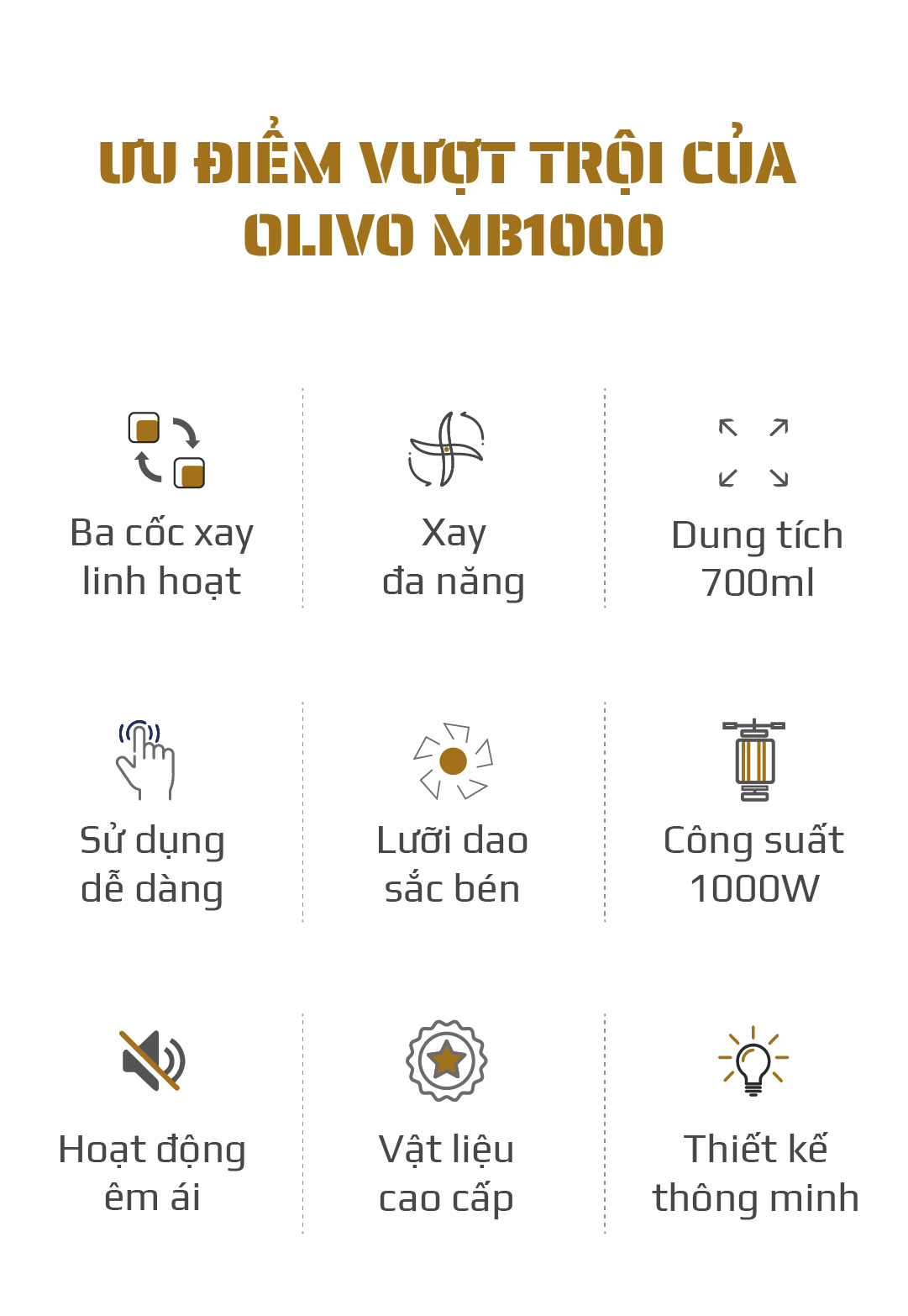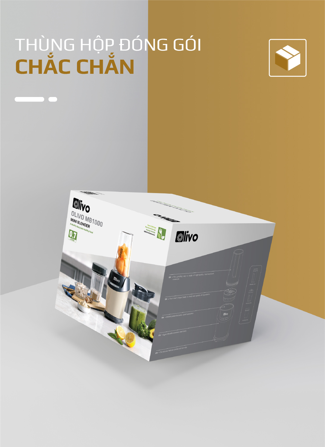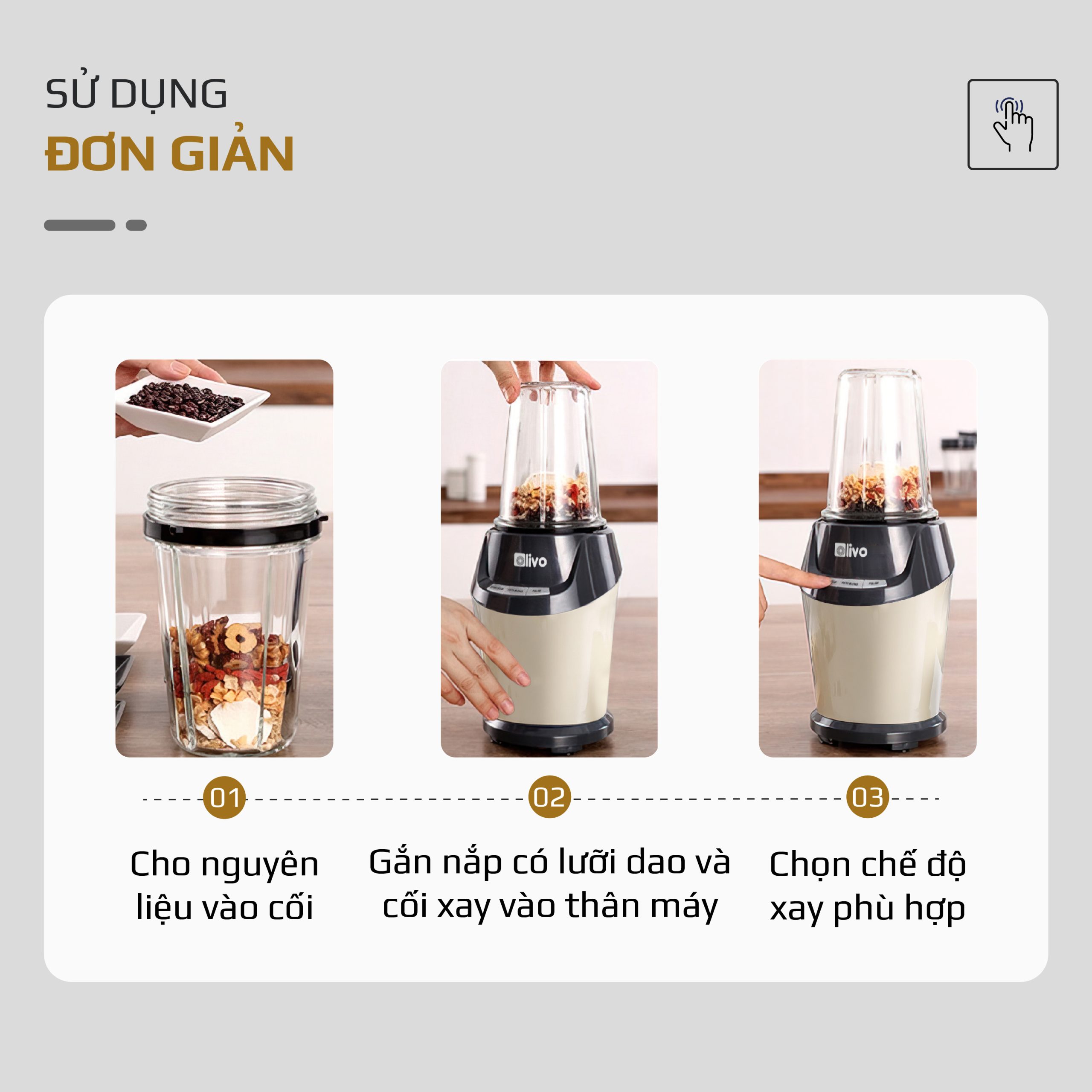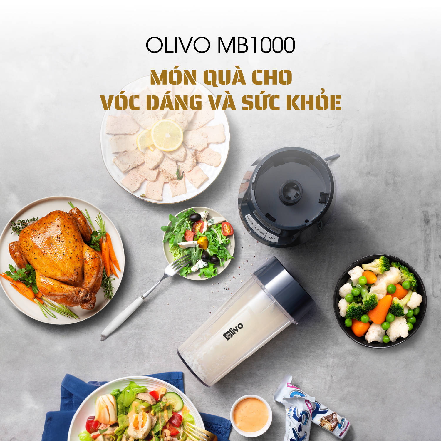 Máy Xay Sinh Tố OLIVO MB1000 – Ba Cốc Xay Linh Hoạt – Xay Đá Bào, Xay Sinh Tố, Smoothie, Đồ Ăn Dặm Cho Bé, Xay Đồ Khô – Công Suất Lớn 1000W