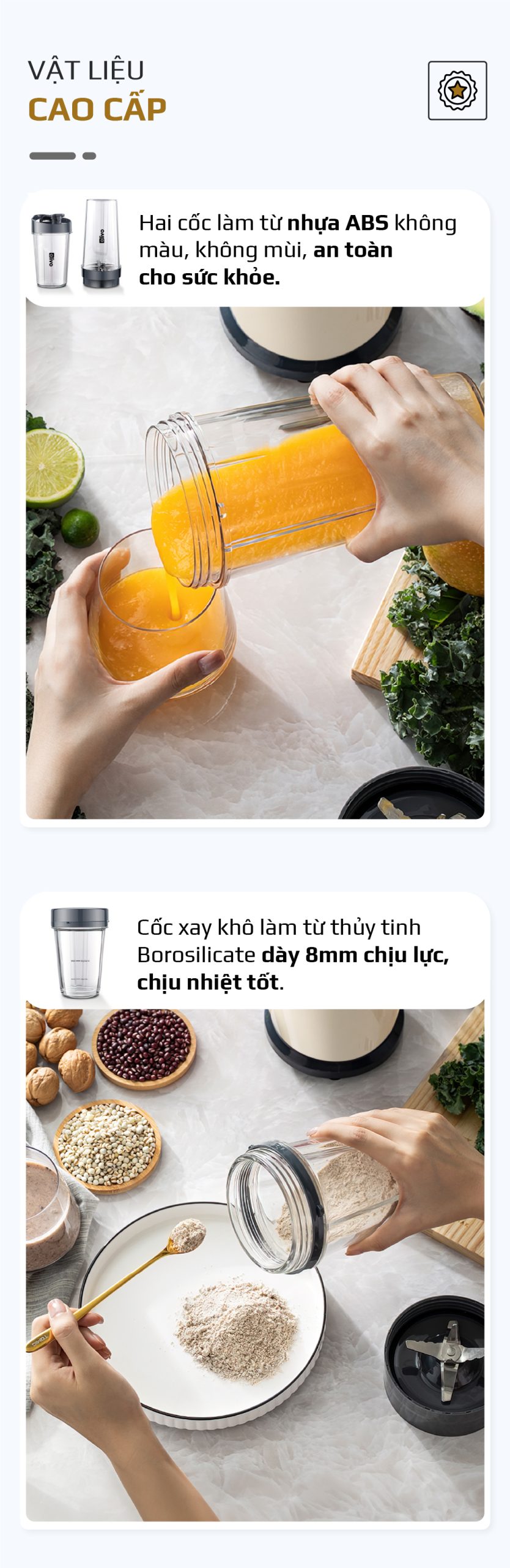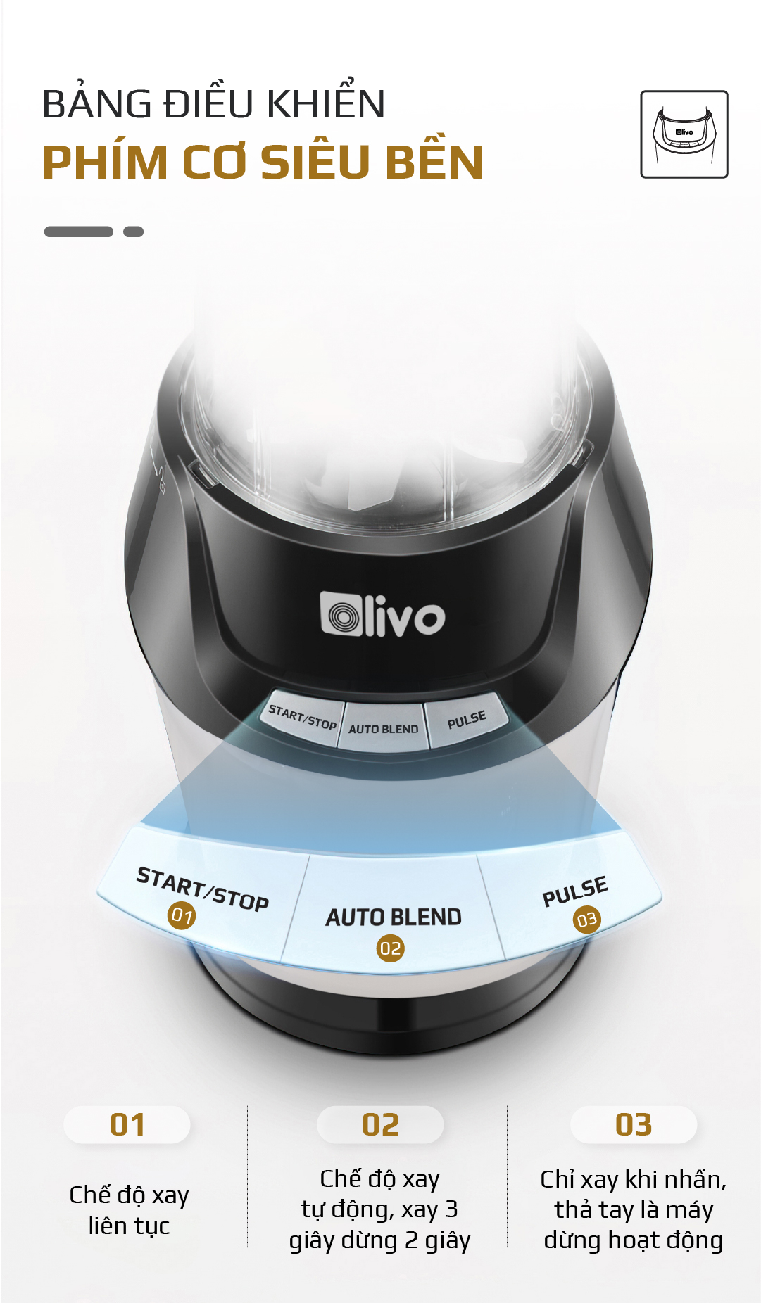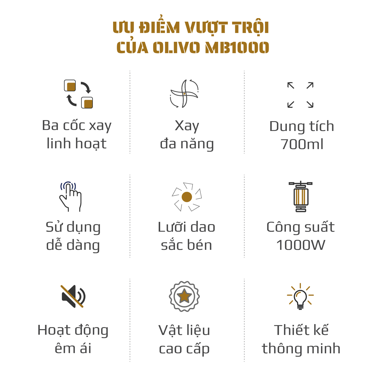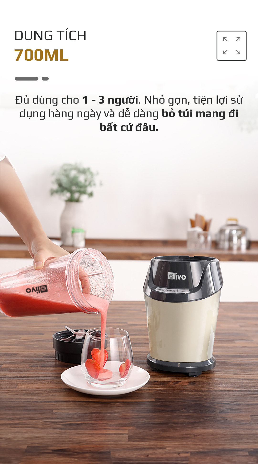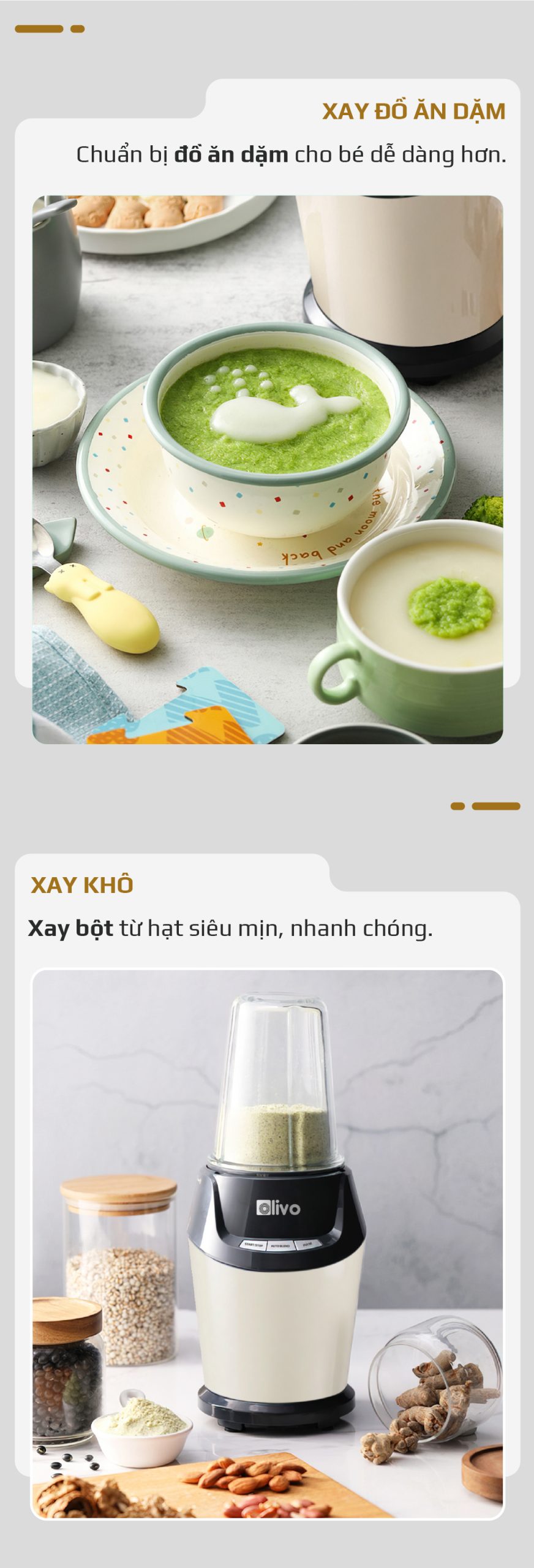 Máy Xay Sinh Tố OLIVO MB1000 – Ba Cốc Xay Linh Hoạt – Xay Đá Bào, Xay Sinh Tố, Smoothie, Đồ Ăn Dặm Cho Bé, Xay Đồ Khô – Công Suất Lớn 1000W