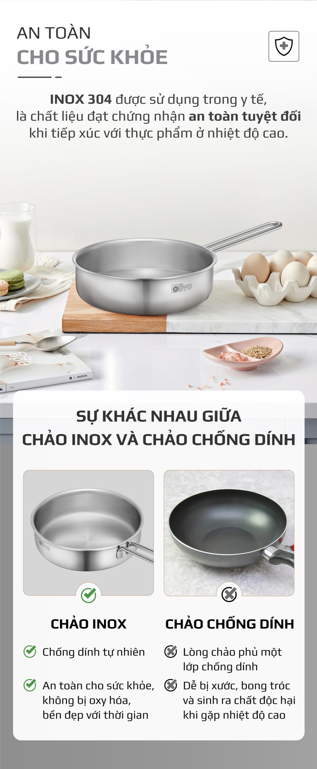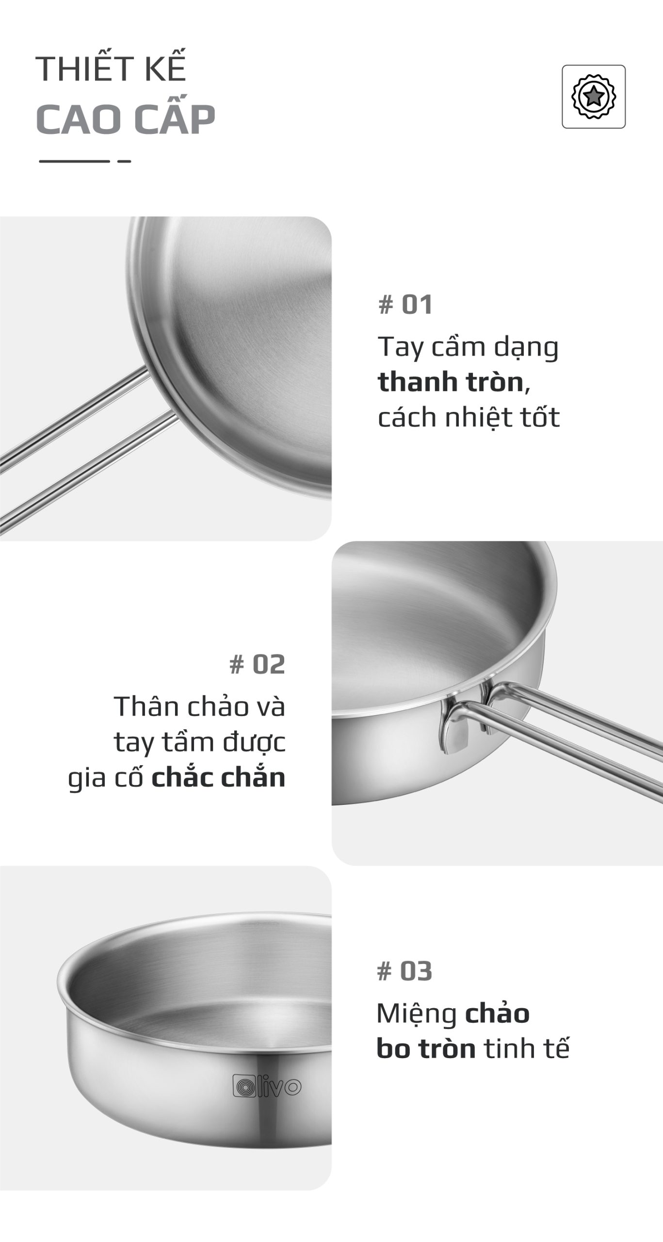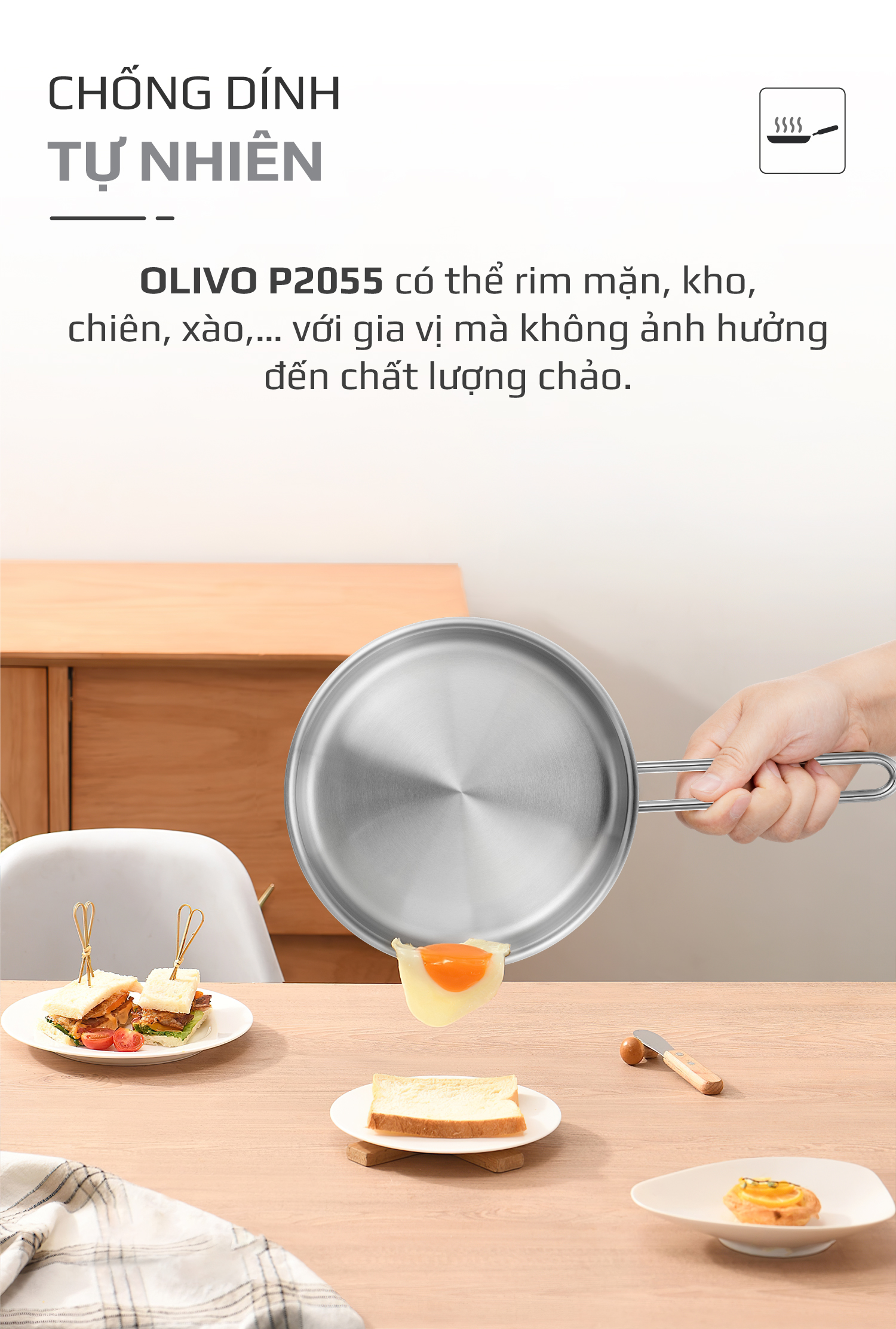 ƯU ĐIỂM VƯỢT TRỘI CỦA SẢN PHẨM CHẢO INOX OLIVO P2055