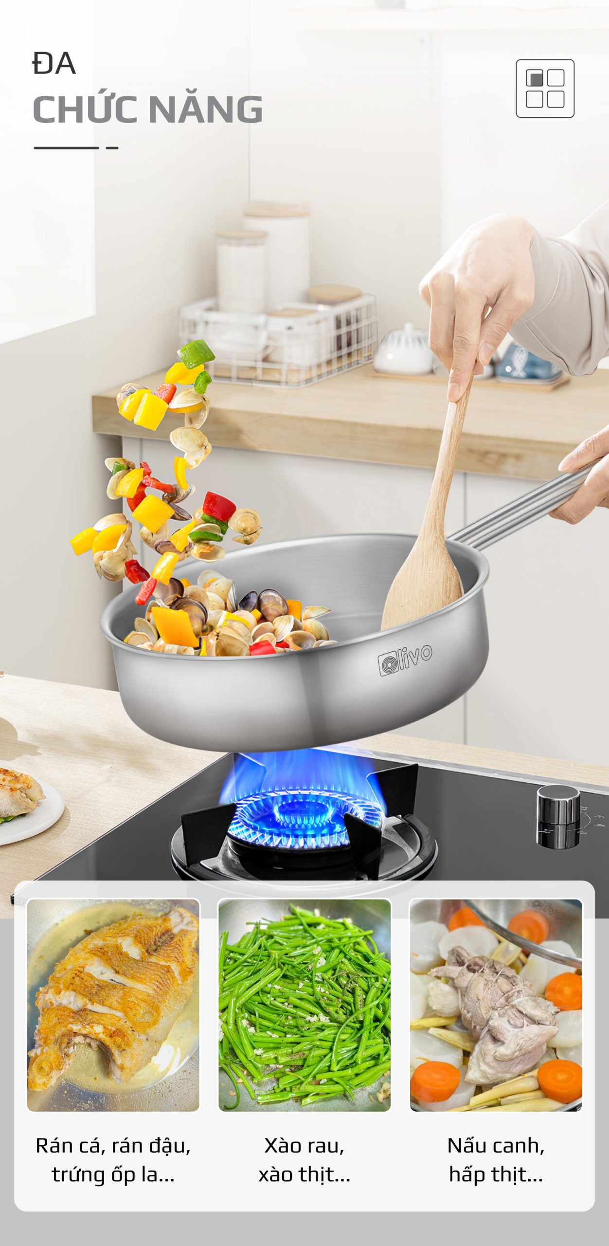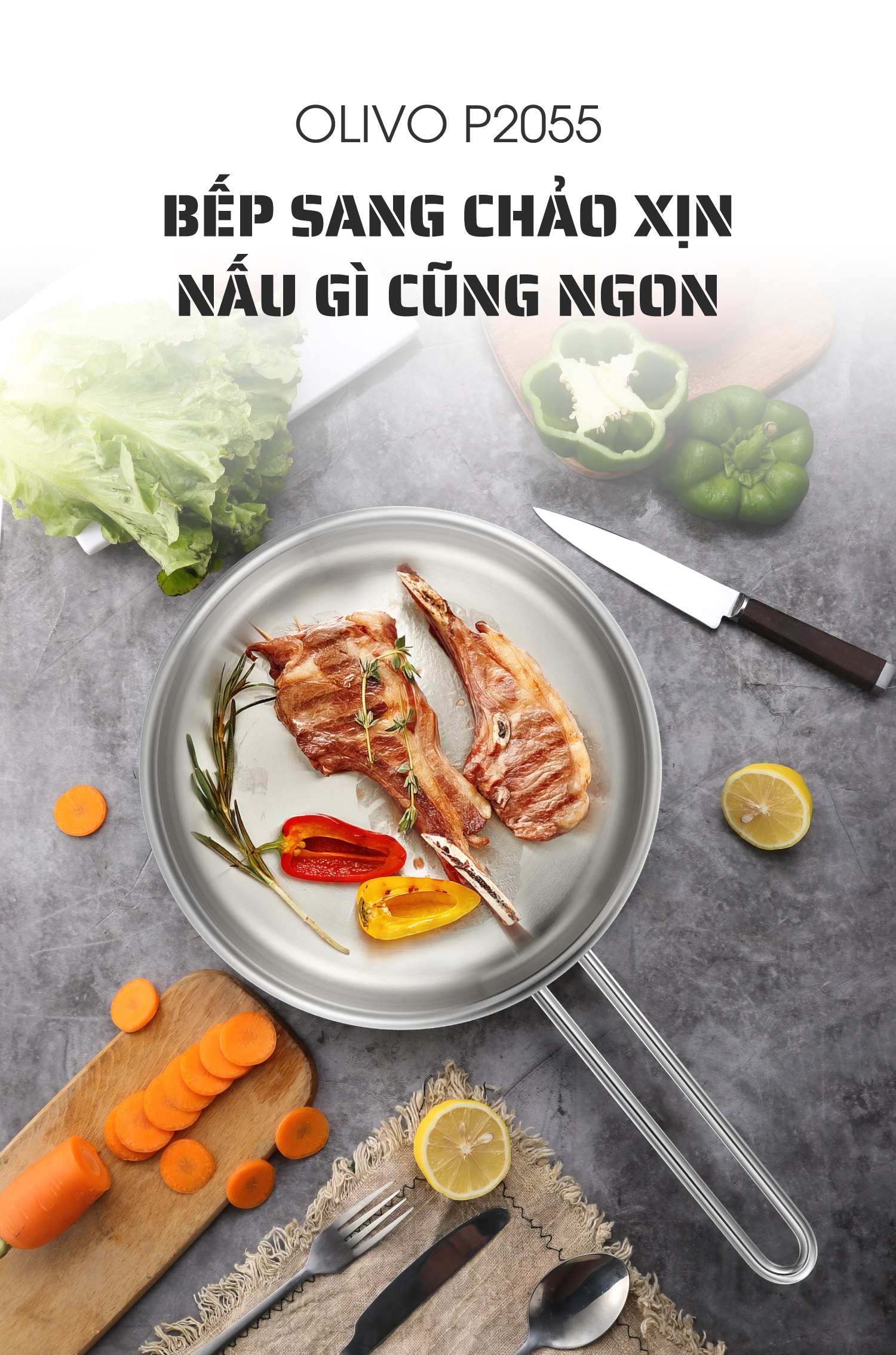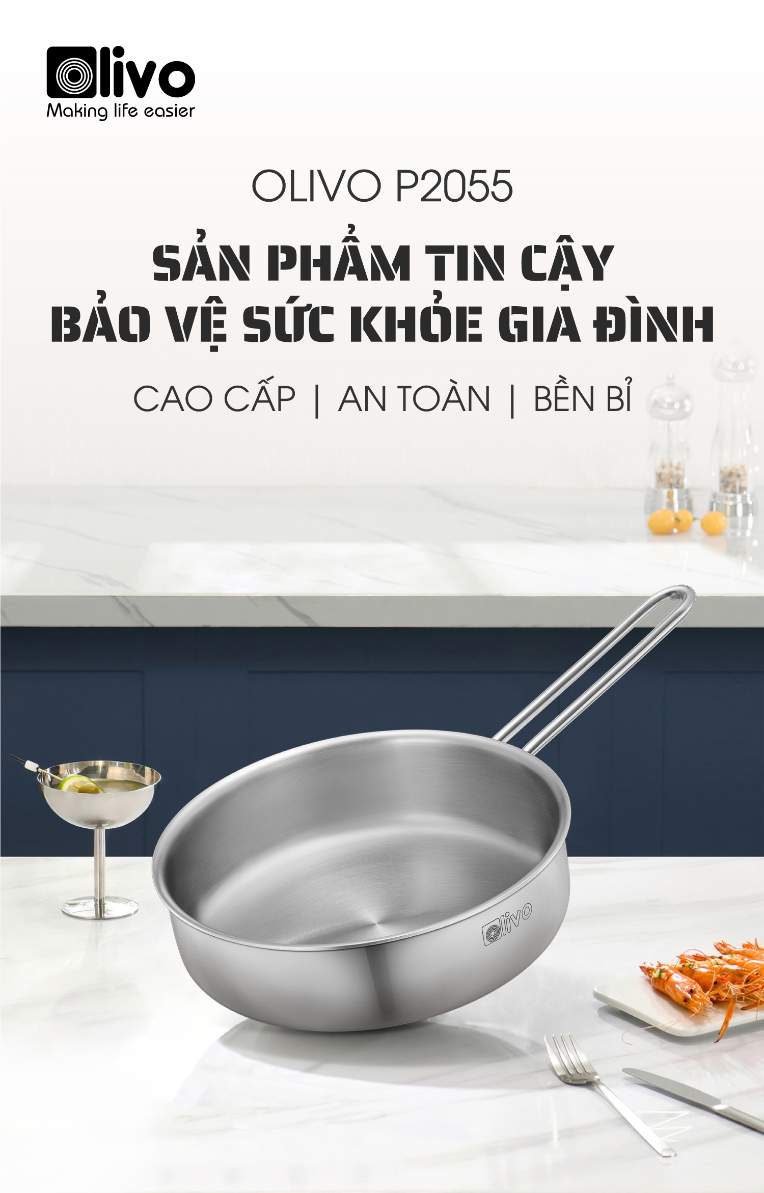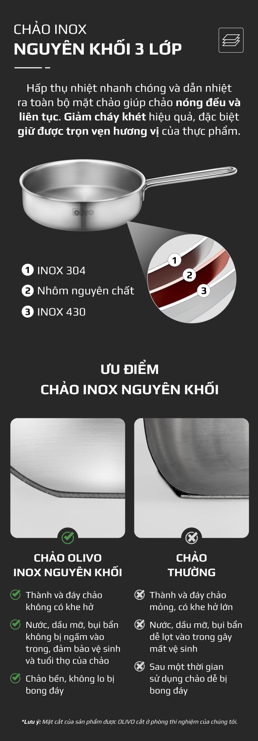ƯU ĐIỂM VƯỢT TRỘI CỦA SẢN PHẨM CHẢO INOX OLIVO P2055