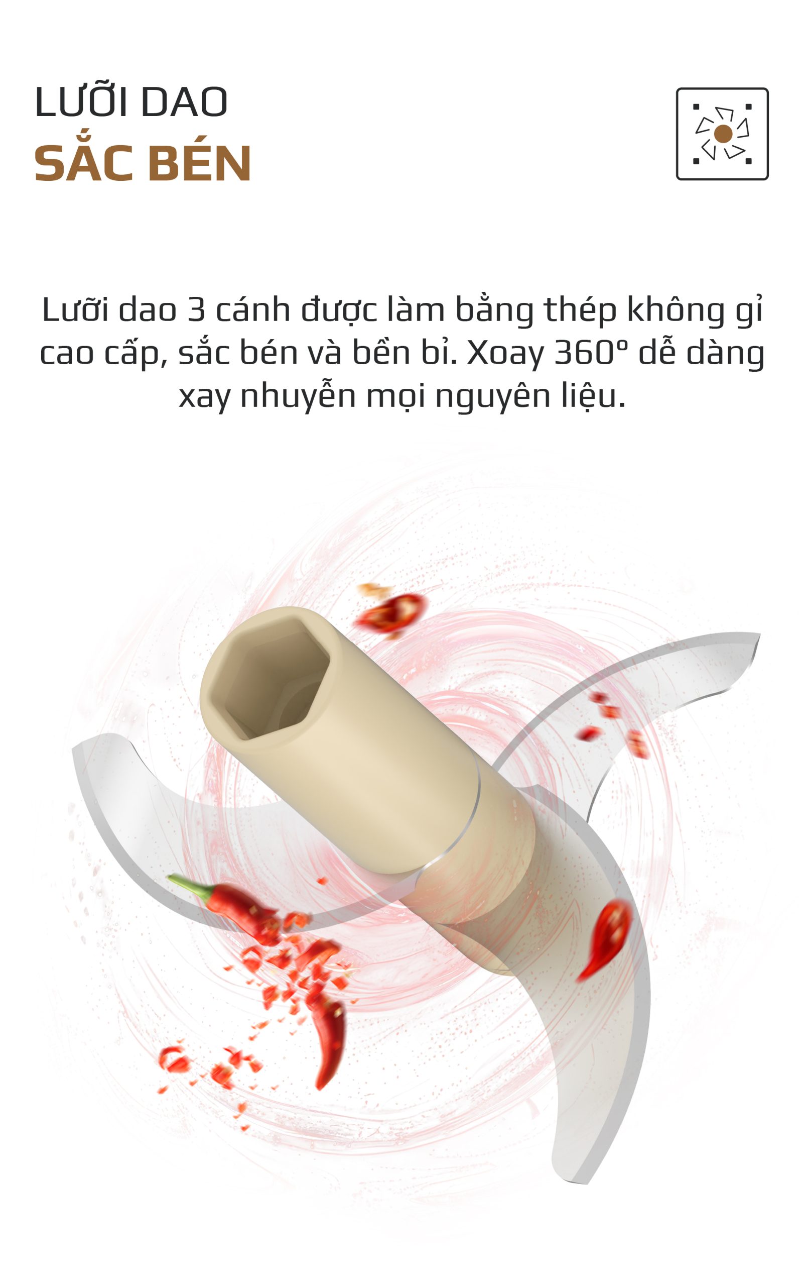 - Lưỡi dao OLIVO RFC270 được làm bằng thép không gỉ đảm bảo độ bền và độ sắc bén tuyệt đối. Thiết kế 3 tầng giúp gia tăng hiệu quả xay nhuyễn đồng đều ngay cả với nguyên liệu cứng như hạt khô.