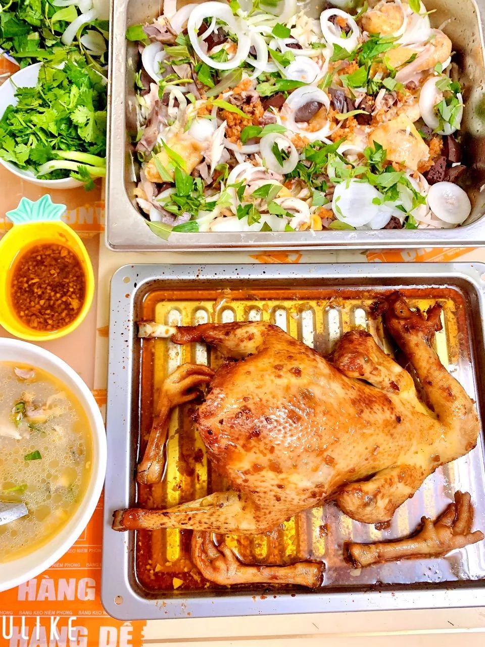 Chiên gà: Gà rán vàng giòn, thịt mềm, không bị khô.