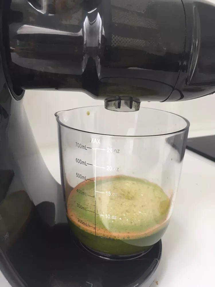 Máy đẹp quá, mình thấy rất sang trọng và tinh tế, nhìn cũng gọn nhẹ, mới test ép rau thì đúng là quá chất lượng, ép thoải mái luôn không ngại gì rau nhiều sơ cũng ép được.