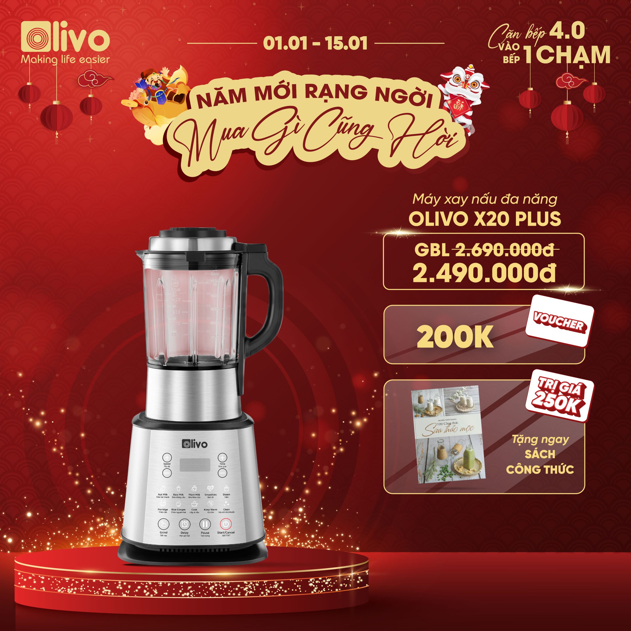 - OLIVO X20 PLUS là sản phẩm Máy xay nấu đa năng phiên bản mới cải tiến của nhà OLIVO. Nâng cấp lên tới 3 chức năng xay nấu sữa hạt, thêm tính năng tạm dừng thông minh và cải tiến về độ ồn của sản phẩm nhằm mang tới cho khách hàng trải nghiệm tuyệt vời nhất.