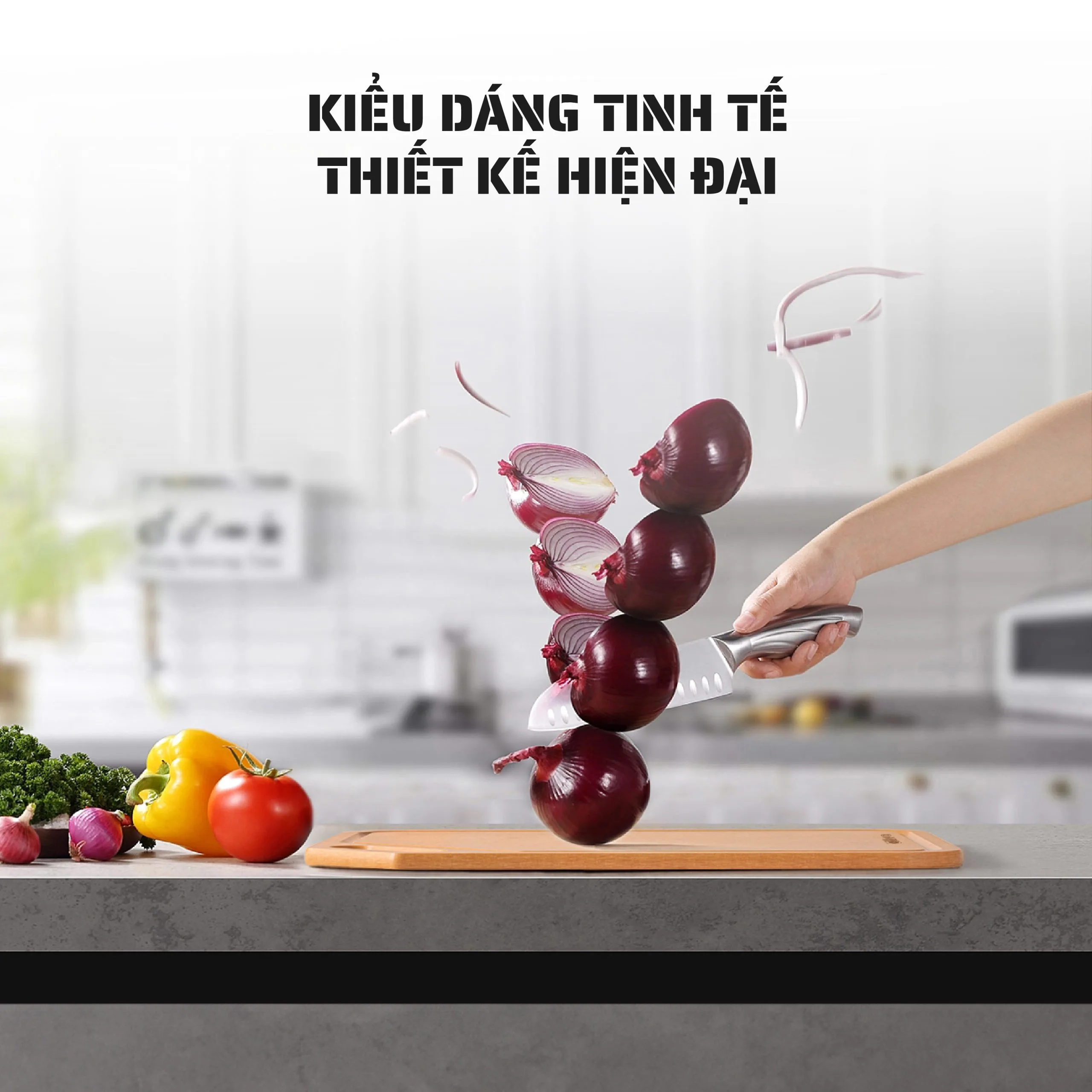 - WOOD FIBER – Sợi gỗ tự nhiên được ép chặt với áp lực 3000 tấn trong môi trường nhiệt độ và áp suất cao, tạo nên chiếc thớt gỗ có độ cứng cáp và bền bỉ vượt trội.