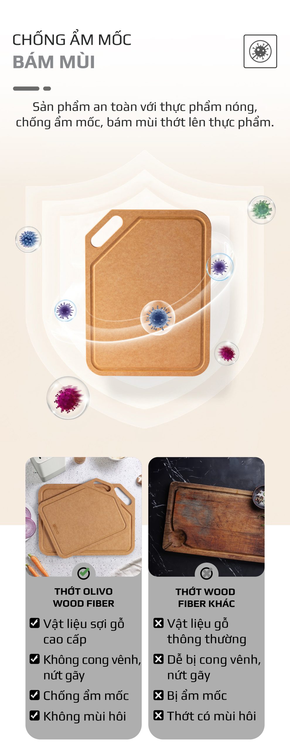 Thớt là vật dụng thiết yếu trong căn bếp. Thớt OLIVO Wood Fiber K30s và K37s là sản phẩm cao cấp thân thiện với môi trường, sức khỏe của người sử dụng. Đặc biệt, chất liệu “wood fiber” – sợi gỗ tự nhiên đáp ứng mọi tiêu chuẩn an toàn có thể kể đến như: thớt không bị mùi hôi, ẩm mốc, cong vênh, mùn thớt, có độ bền cao, hạn chế vết dao cắt… Vì vậy, thớt OLIVO Wood Fiber K30s và K37s xứng đáng góp mặt trong căn bếp nhà bạn để trở thành trợ thủ đắc lực cho người nội trợ khi sơ chế thực phẩm.